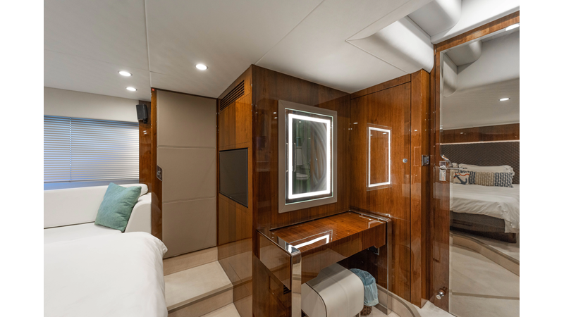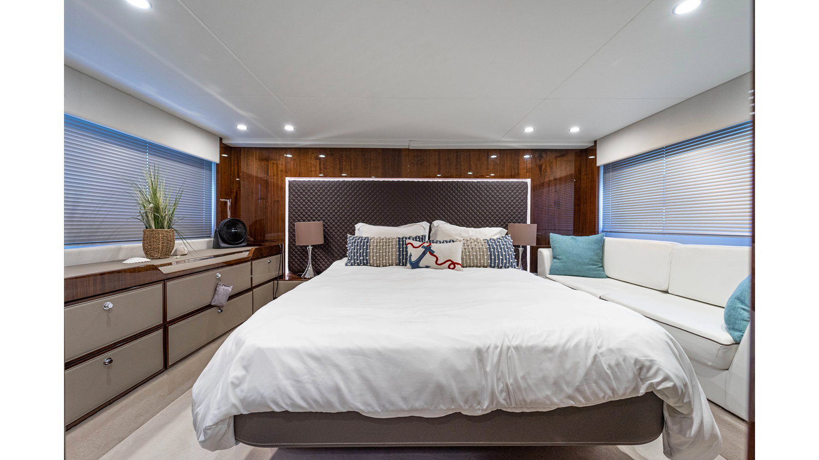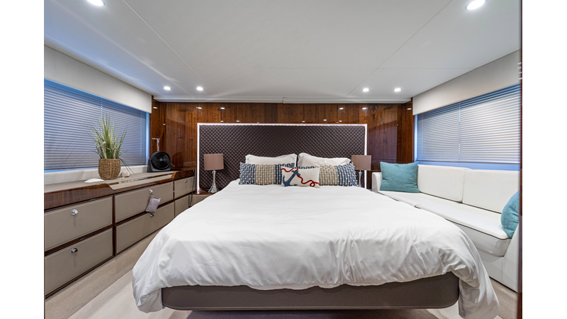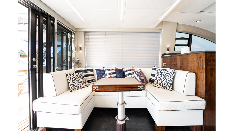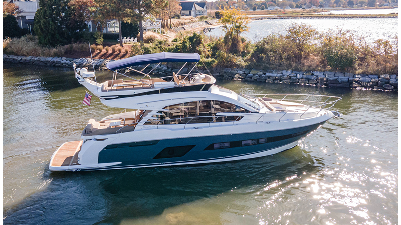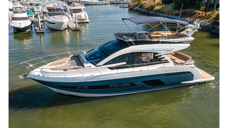 The Fairline Squadron is a dynamic 55-foot luxury cruiser by iconic British yacht manufacturer Fairline Yachts which made its world debut at Boot Dusseldorf in 2017. Since then, this Alberto Mancini-designed model has scooped up such awards as Best Flyer at the Motor Boat Awards and Asia Boating Awards – and with good reason.