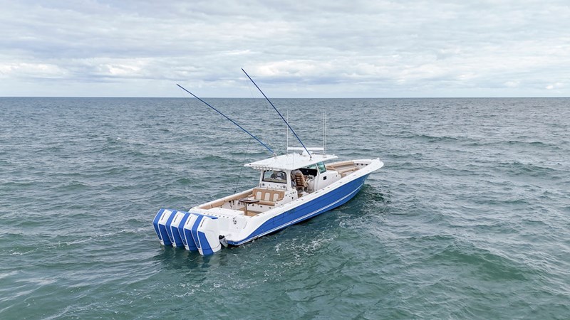 2023 HCB 53 Suenos with Quad Mercury 600 HP outboard engines with less than 300hrs with transferrable engine warranty until 2029 . This boat is truly a one of a kind Fishing Platform with numerous upgrades throughout. This beautiful Jet Stream Blue hull with tan/cream topside upholstery is sure to be a show stopper. The Four 600 HP engines, with joystick control, and bow thruster make this boat highly maneuverable around the dock.