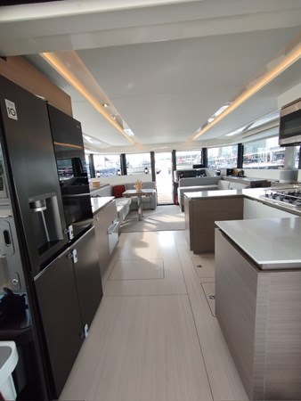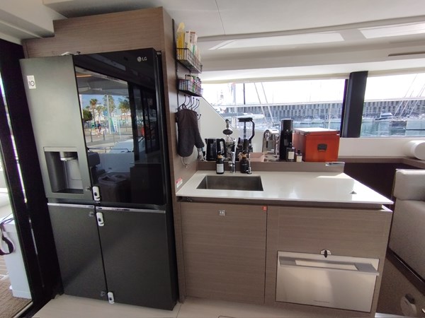 Performance is assured with twin Yanmar® 370 HP engines showing just 936 hours (starboard) and 934 hours (port) . Generator hours are equally low: Northern Lights® 12 kW at 1,001 hrs and Fischer Panda® PMS 10000i at 371 hrs . Combined with 2,100 L fuel and 700 L freshwater , Plan C offers long-range capability while consuming up to 50 % less fuel than comparable monohull yachts.