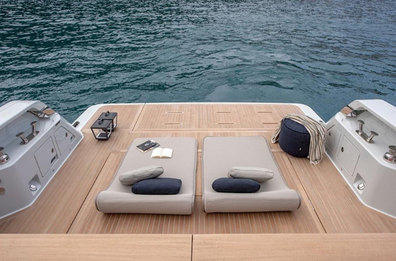 Spacious outside space with a big swim platform & beach club