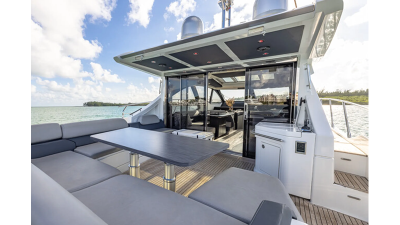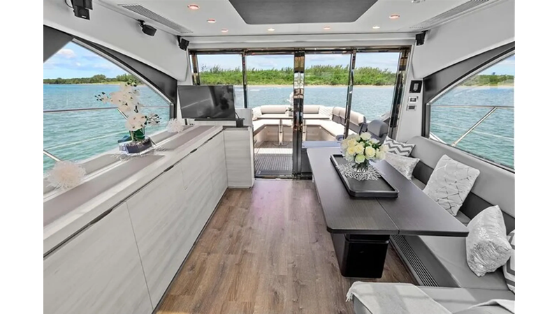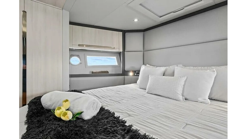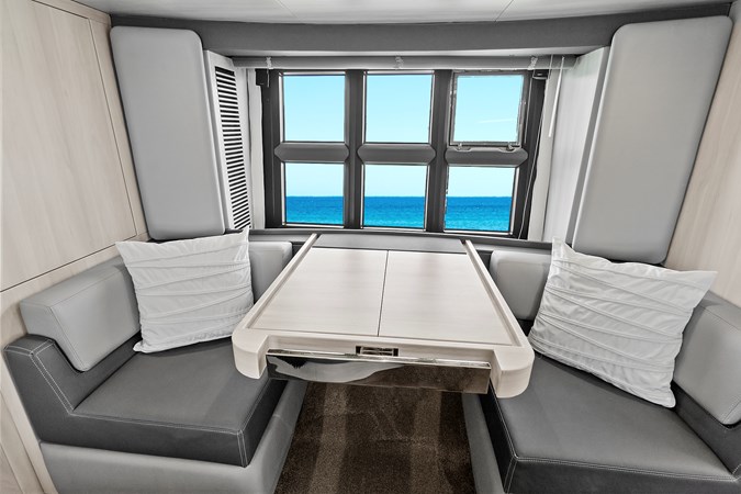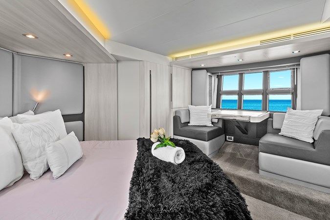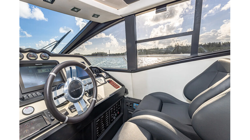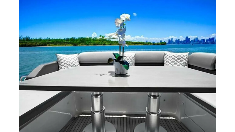 The 2015 Azimut 55S is the epitome of speed and sophistication. Powered by 3 Volvo Penta IPS 600 engines, this vessel delivers the ultimate sporty experience. Lithium is sleek and impressive on the water. Her outdoor living spaces are expansive and include a wet bar, electric grill, and beautiful L-shaped seating area with a modern table. Inside, the main salon is elegant and contemporary. Design features include large panoramic windows, light washed hardwood floors, modern white and grey upholstery and accents, a comfortable seating area with a high and low dining table, main floor galley, and a retractable sunroof. At the bow there is a large and comfortable area for sunbathing. The vessel has three exquisitely appointed staterooms, each offering comfort, privacy, and modern heads. Lithium is both impressive and memorable, reminiscent of a coupé. She is the ideal yacht for a buyer looking for a contemporary and innovative yacht!