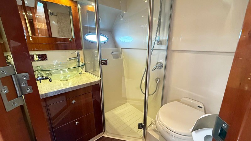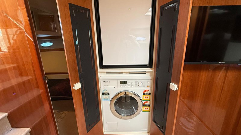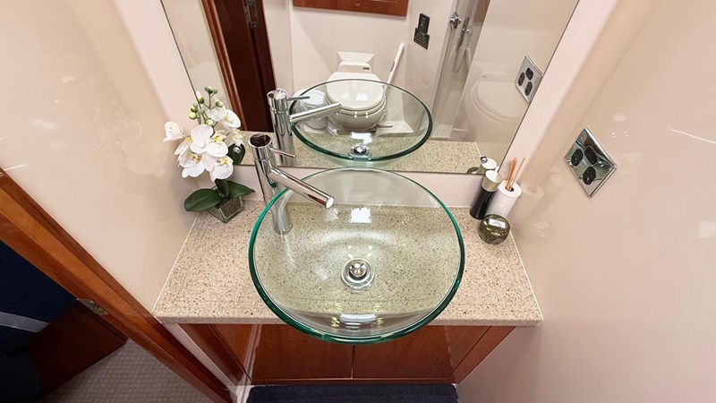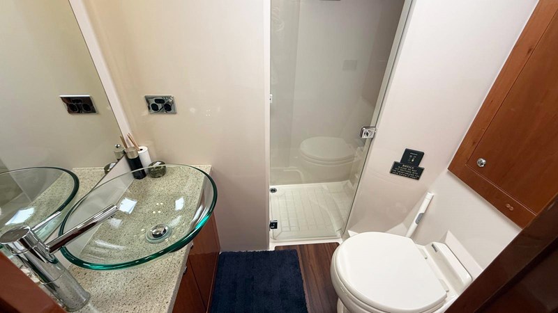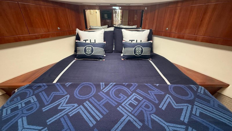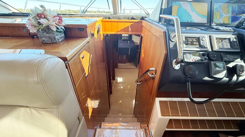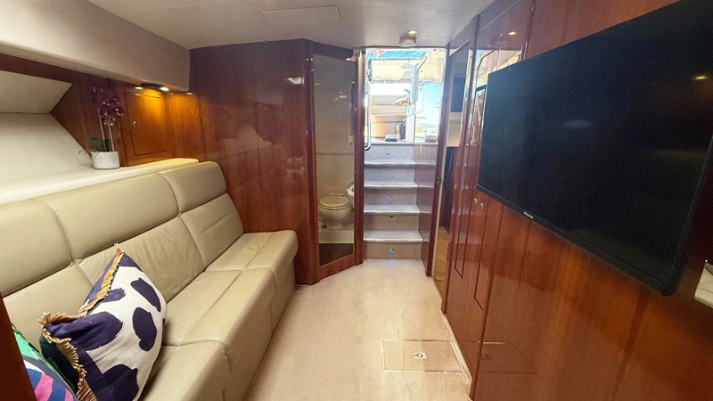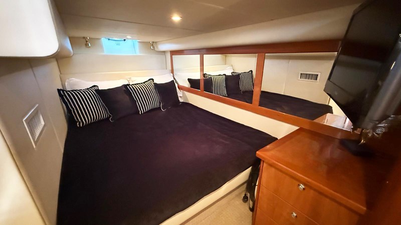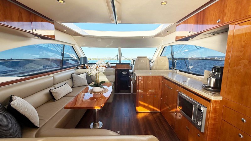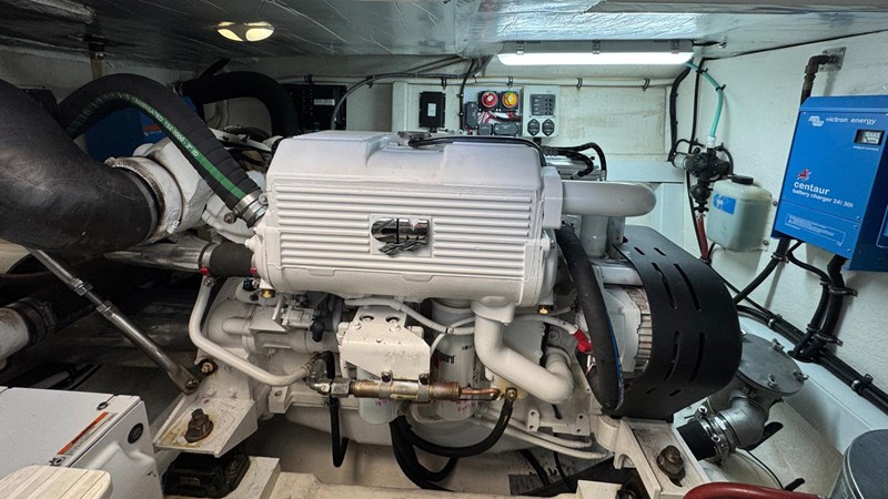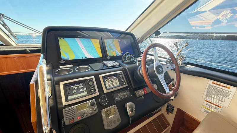 Powered by twin 600hp Cummins engines , she delivers a smooth, responsive ride, cruising comfortably around 24 knots and topping out at 32 knots . The Zeus drive system with rear-facing props makes handling a breeze, whether you’re out exploring or docking in tight marinas.