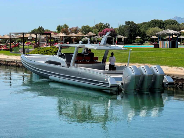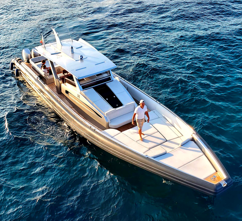 The expansive deck layout provides generous living space, featuring two large tables perfect for hosting family and friends, along with ample sunbed areas for relaxation. Whether you’re using it as a day boat or a chase boat, this vessel leads its class in performance, comfort, and versatility.