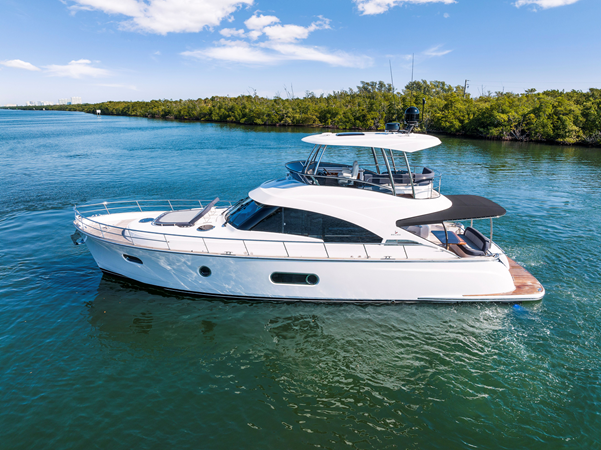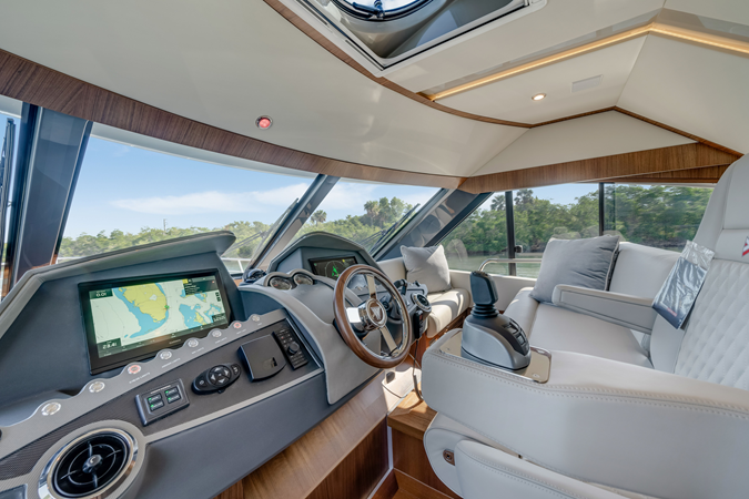 One-level living from the galley aft to the cockpit. An inspired lower command helm with dedicated guest seating.
