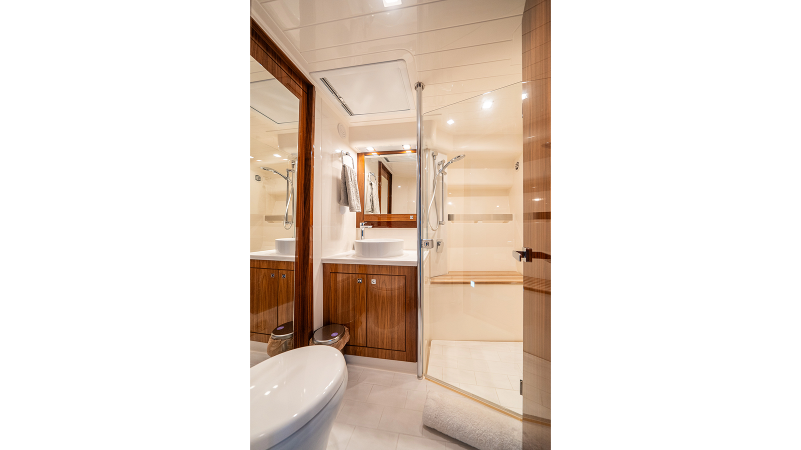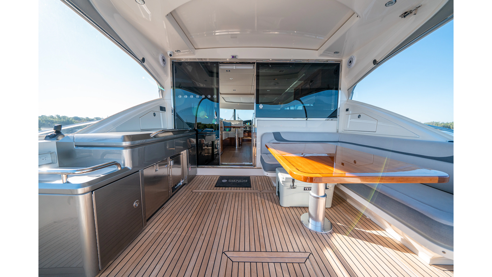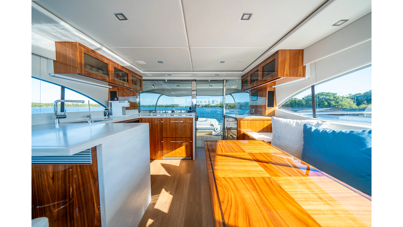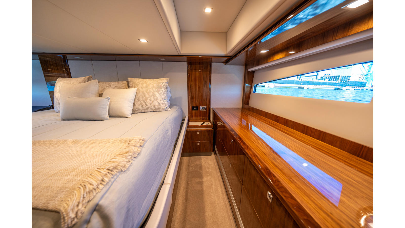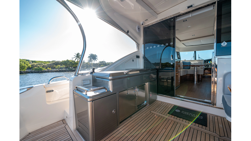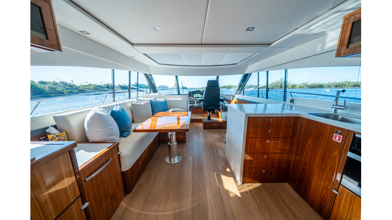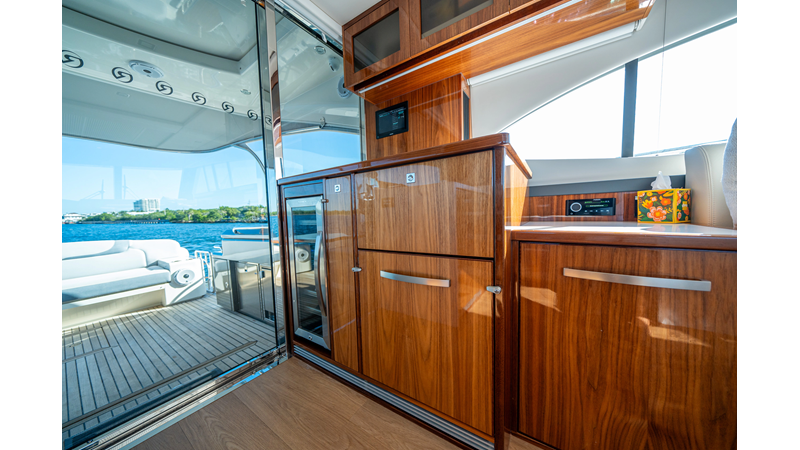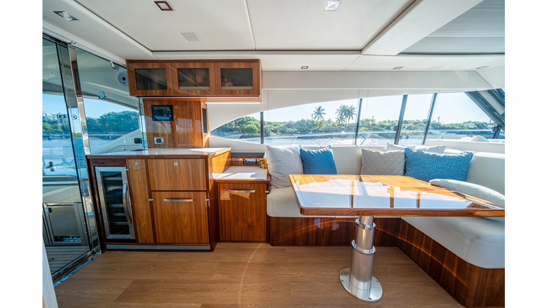 Below deck, WATERDOG offers a three-stateroom, two-head layout, highlighted by a full-beam master suite with a private ensuite. Every detail reflects Riviera’s commitment to craftsmanship and comfort, from the high-gloss timber finishes to the thoughtful integration of light, texture, and space.