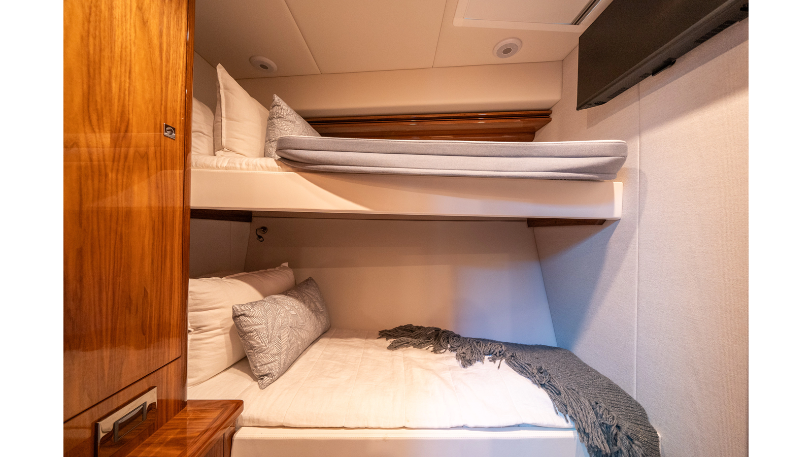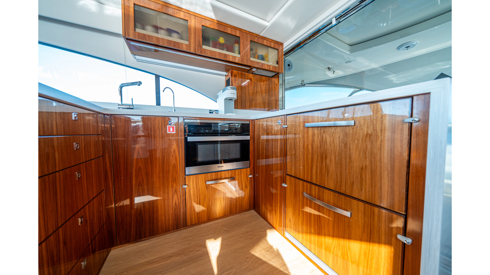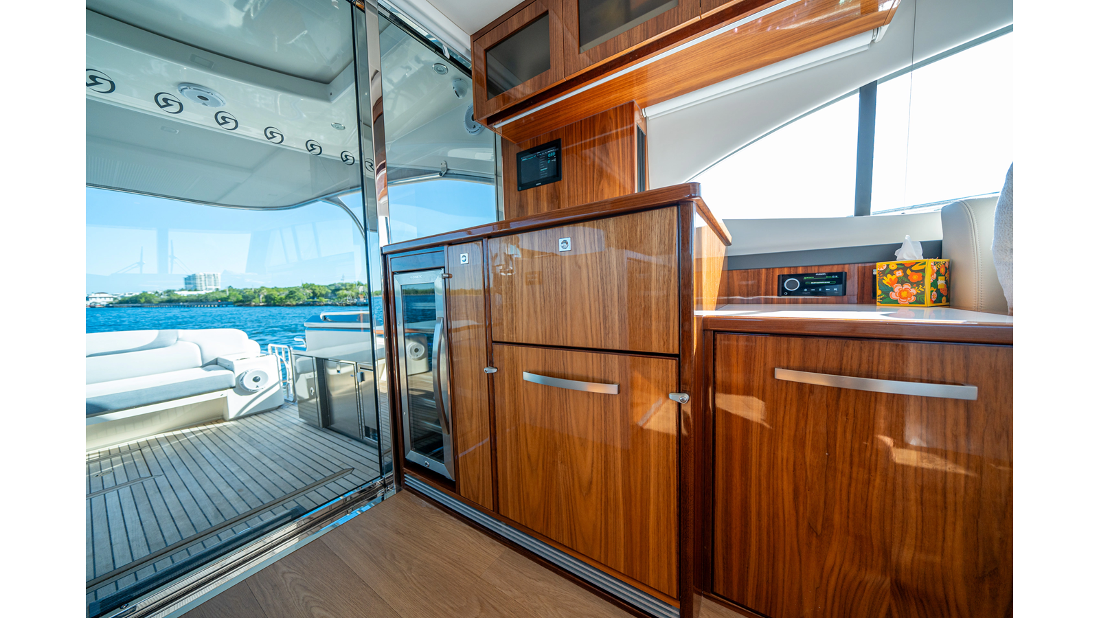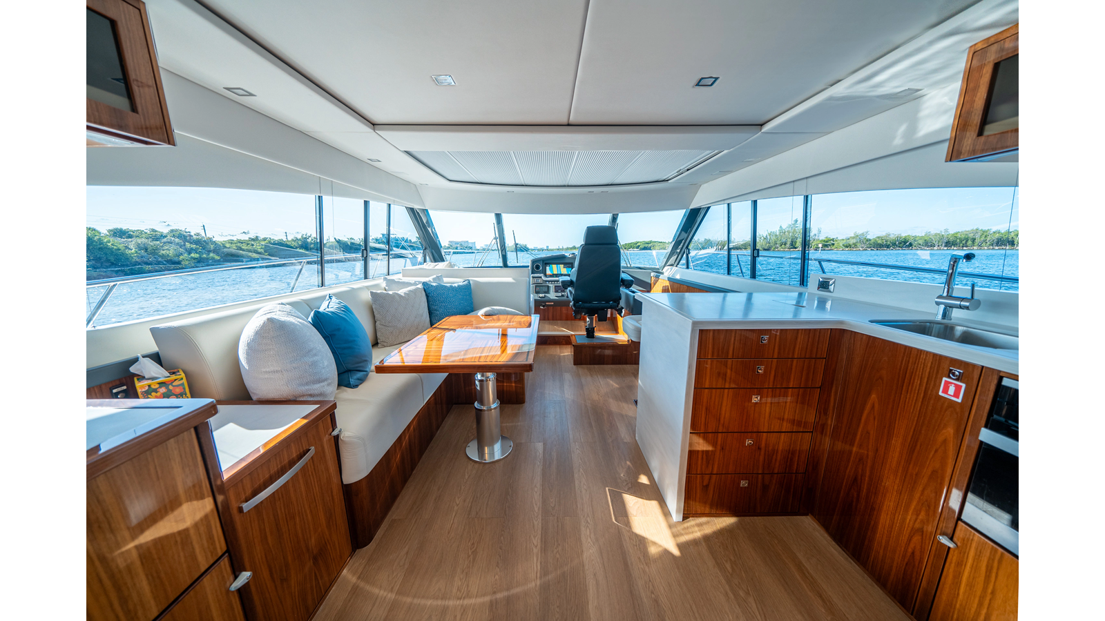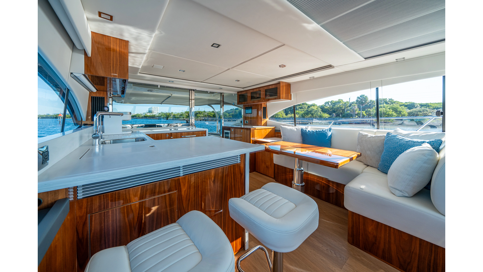 Below deck, WATERDOG offers a three-stateroom, two-head layout, highlighted by a full-beam master suite with a private ensuite. Every detail reflects Riviera’s commitment to craftsmanship and comfort, from the high-gloss timber finishes to the thoughtful integration of light, texture, and space.