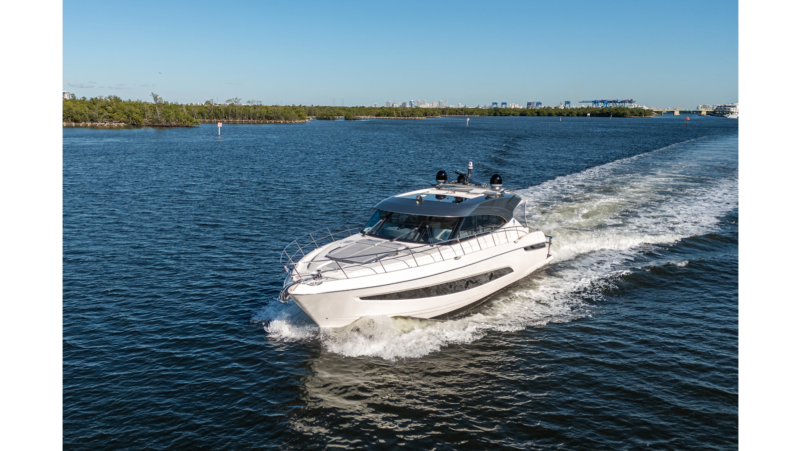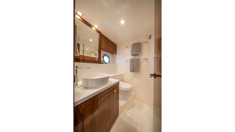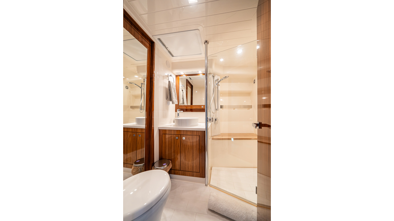 Recent services include bottom paint, Seakeeper maintenance, AC descaling, and generator service, ensuring WATERDOG is turnkey and ready for her next adventure. She is powered by twin Volvo IPS 950s , with only 355 hours .
