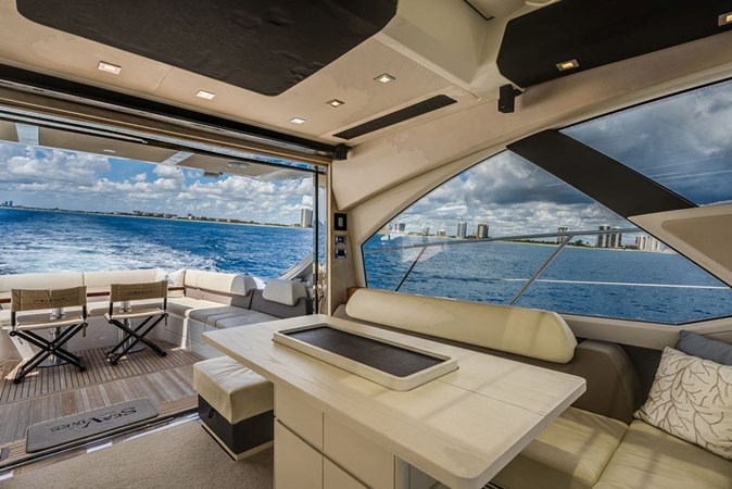 At a length of 55 feet (or 16.76 meters), she stands as a dignified marine structure, presenting an imposing sight upon the waters. Being a product of the Azimut’s 55 S series, this yacht borrows from the collection’s design lineage that is renowned for its excellence and timeless beauty. But what truly sets this vessel apart is its embodiment of the ethos of Azimut – a blend of Italian craftsmanship, modern yachting technology, and refined marine engineering.