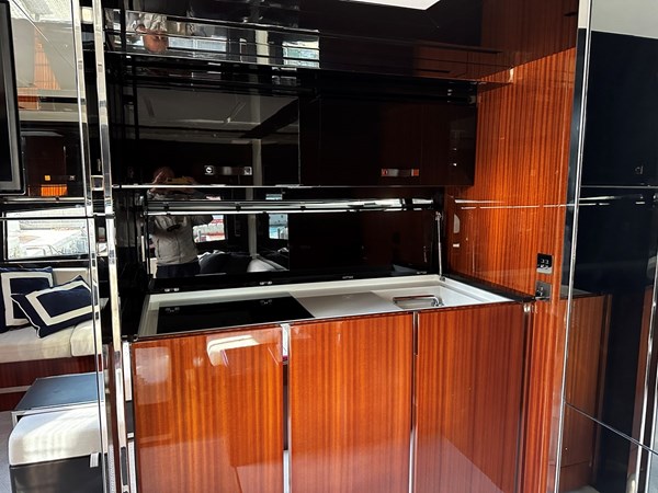 The windows run seamlessly across the entire hull allowing those on board to truly feel “part of the sea”, while the “metallic” design of the exteriors, bold and contemporary, blends harmoniously with the elegant steel elements and teak details.