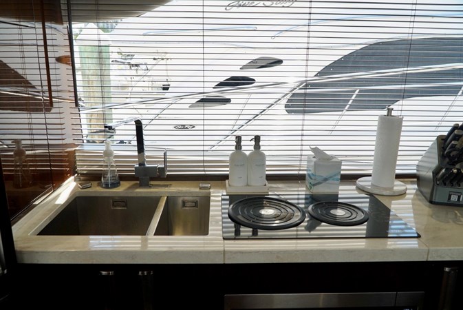 – Custom flush mount barbecue grill on the fly bridge.
