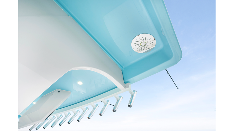 • Underwater lighting • Rainfall shower • Stainless steel rub rail accent
