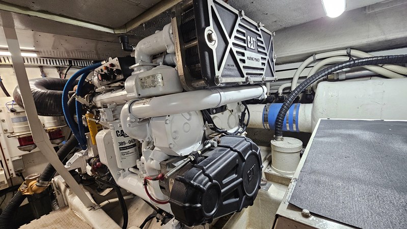 Yes, I spent a lot of bucks getting the 2005 baby up to our standards. New everything! 2000 hour service just done. Waxing, engine room and vessel cleaned. AC, Heat, radios, downward and forward looking Garmin sonars, GPS, Radar, Satellite system, stereo, 3 new flat TV’s, fridge, wine cooler, horns, compressor, spare props, turbos, windows resealed, new windless, tools, spare parts, filters, and so on.