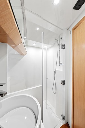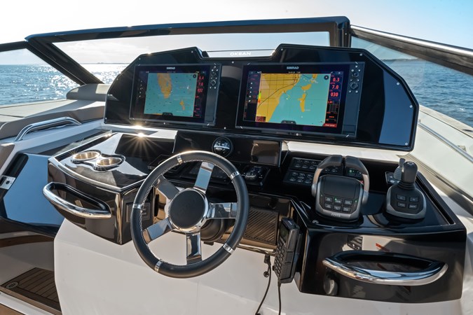 OKEAN 57 offers a helm station equipped with Simrad electronics, ensuring you have complete control for agile navigation. Then choose your style: a large living area with sofas or a large solarium on the bow. Enjoy the impressive space with the open decks of OKEAN 57: a space of almost 1080 sq ft for you to experience the sea up close and in comfort and safety. Navigate with the certainty of redefining the design of a Sport line vessel wherever you go.