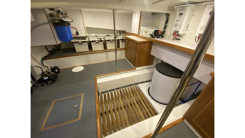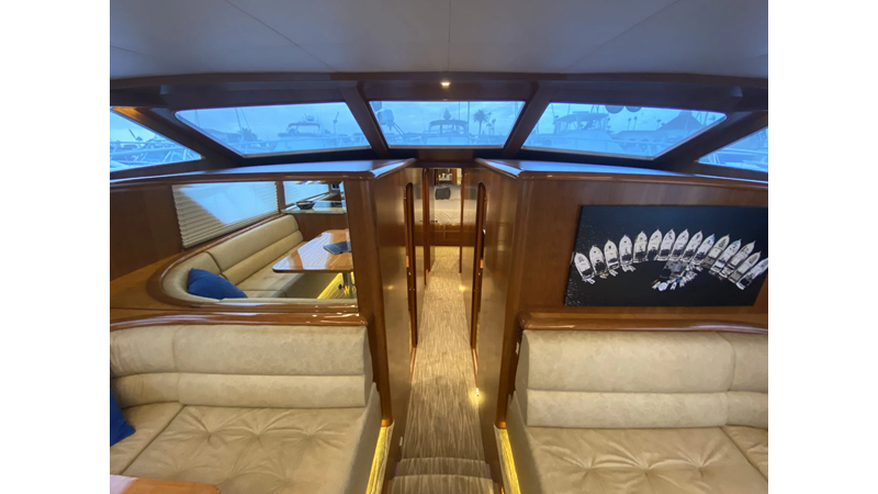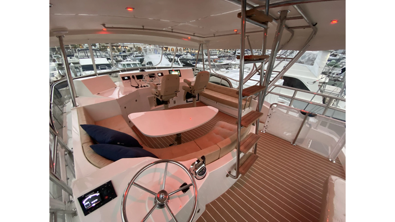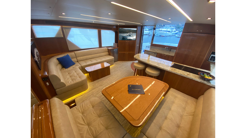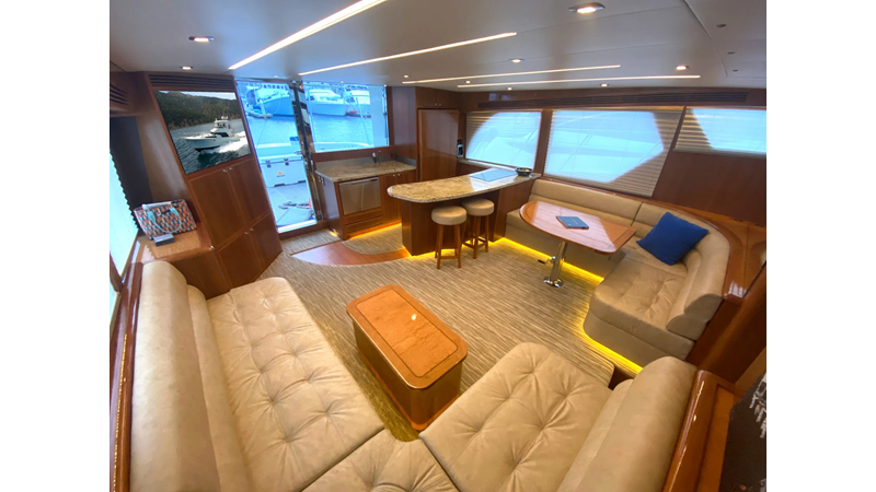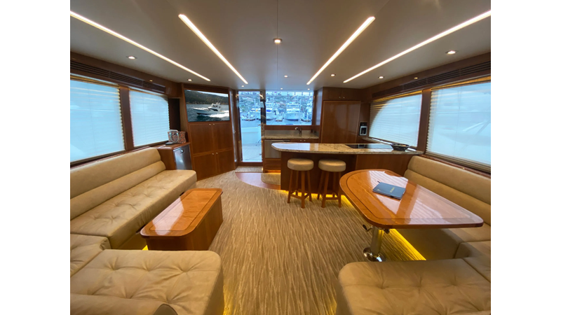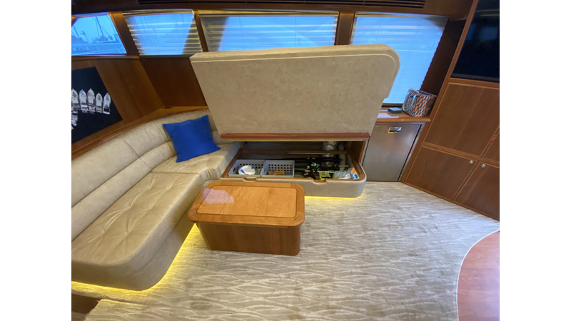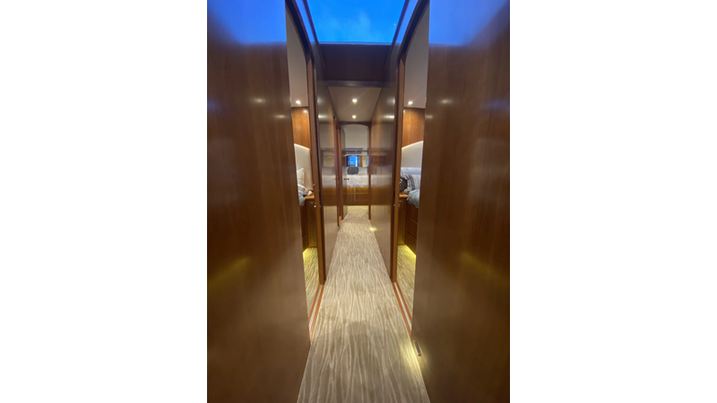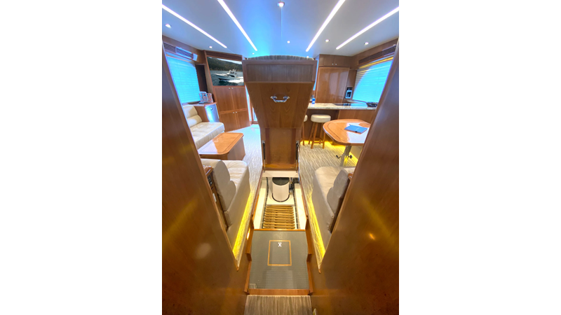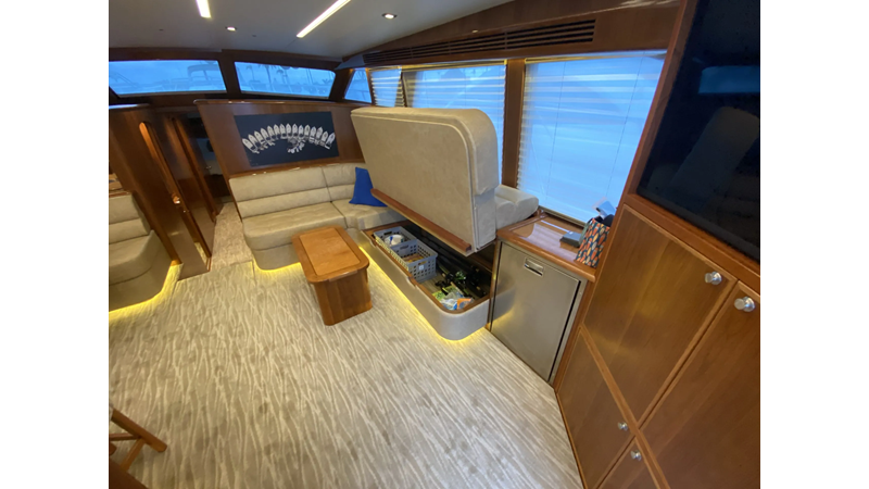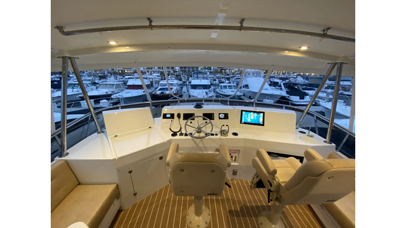 Equipped with a stand-up engine room and a cockpit day head with shower, this yacht also boasts a generous 1,200-gallon fuel capacity. With standard 715hp QSM-11 Cummins engines or the option of 800hp MAN “Common Rail” diesels, the Mikelson 57 is a powerhouse, offering a top-of-the-line boating experience. The generous stand-up engine room provides easy access to all systems, and the largest flying bridge in its class makes the Mikelson 57 a must-see.