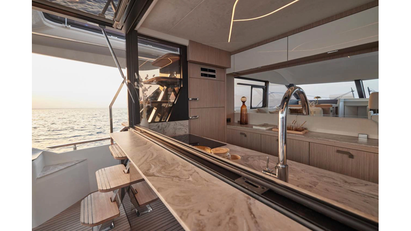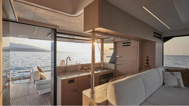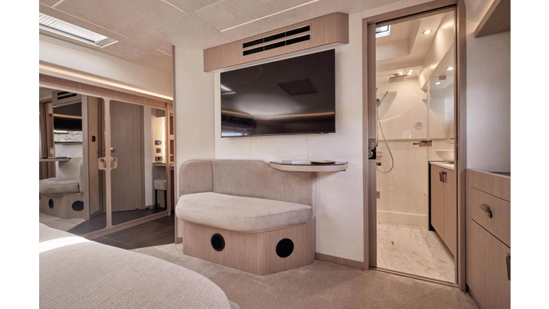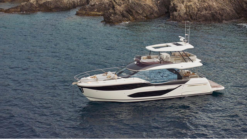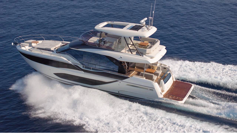 The Prestige F5.7 introduces the next generation of the F-Line flybridge series, offering luxury and clever design in a 57-foot profile. It’s designed for owners who want high-end finishing, smart layouts and ease of use, perfect for cruising the U.S. coast or Bahamas in comfort and style.