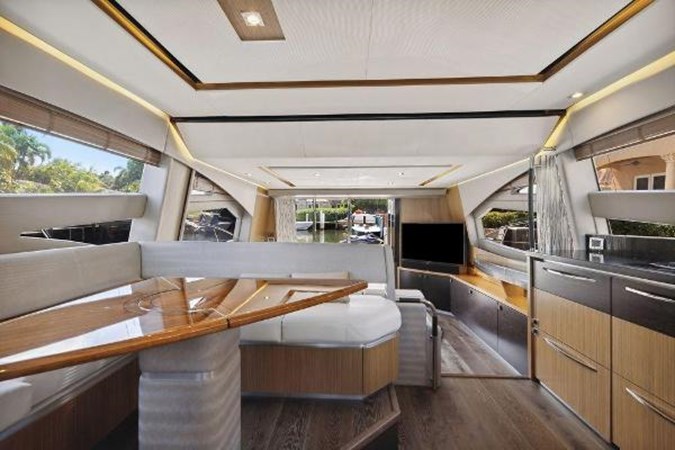 Step into a world of elegance inside GRATITUDE. The salon is a showcase of refined craftsmanship, with lo-gloss wood finishes, premium upholstery, and panoramic windows that flood the space with natural light. The open-concept design seamlessly connects the salon, galley, and dining area, creating an inviting space for entertaining.