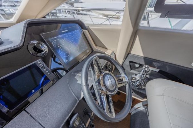 This yacht features an extended hydraulic swim platform, perfect for launching water toys or providing easy water access. Ample lounging areas at the bow and cockpit make it ideal for sunbathing, socializing, al fresco dining or enjoying the sea breeze.