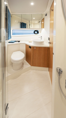 The 585 is an extremely spacious addition to the Riviera SUV collection; an expansive, single-level alfresco entertainer with even more accommodation and brilliant features. Experience new levels of luxury living, entertaining and relaxing all with that signature SUV spirit of adventure, proven blue water performance and water sports action. Enjoy two superb dining options – on the alfresco deck and in the spacious saloon – as well as a third U-shaped, 8-seat entertaining area on the foredeck. Your alfresco deck effectively increases the saloon-level living area by a third. Slide open the tinted glass door, then open out the large tinted glass awning window; now the alfresco deck connects and flows through to the saloon and galley, effectively making one grand-living and entertaining space. Pamper your family and friends with three luxurious staterooms including a full-beam master, three bathrooms and a crew cabin or utility room with dedicated laundry. Relish the Riviera attention to detail, handcrafted luxury and easy-to-use technology that makes boating easier and even more enjoyable; for a weekend escape or extended cruise.