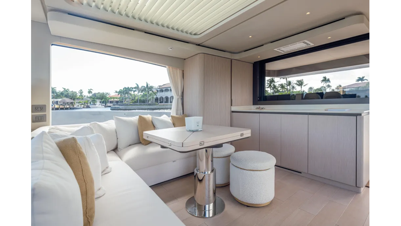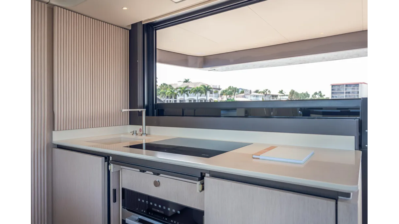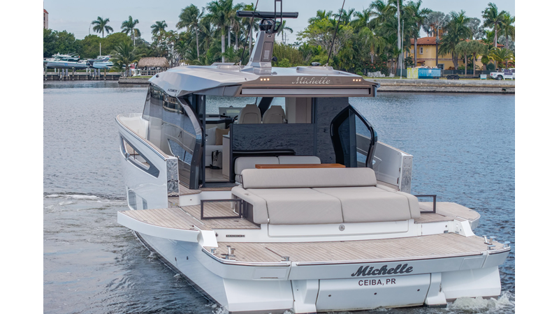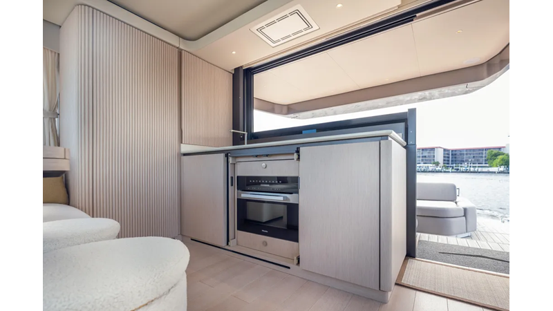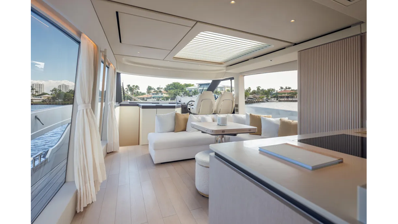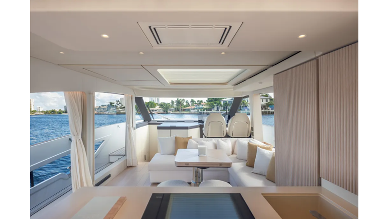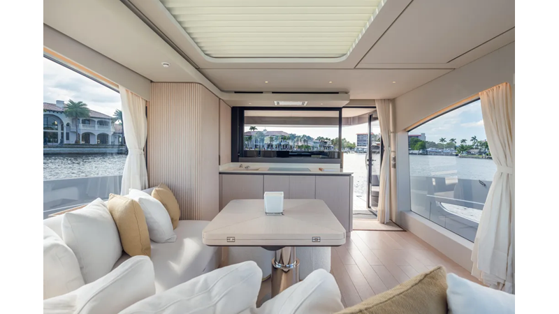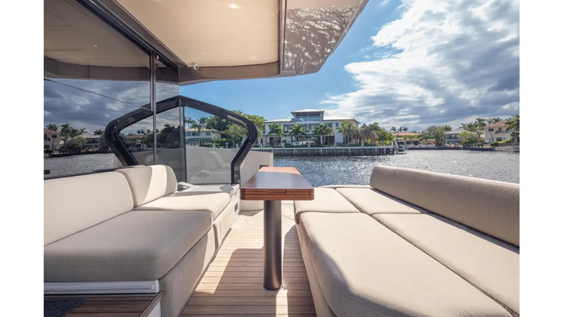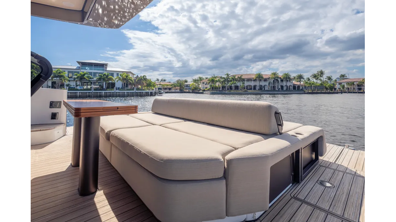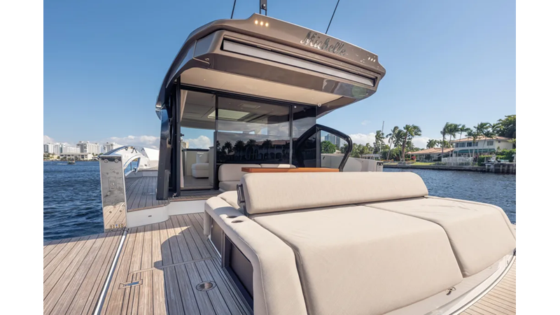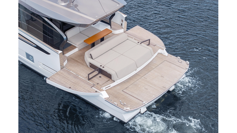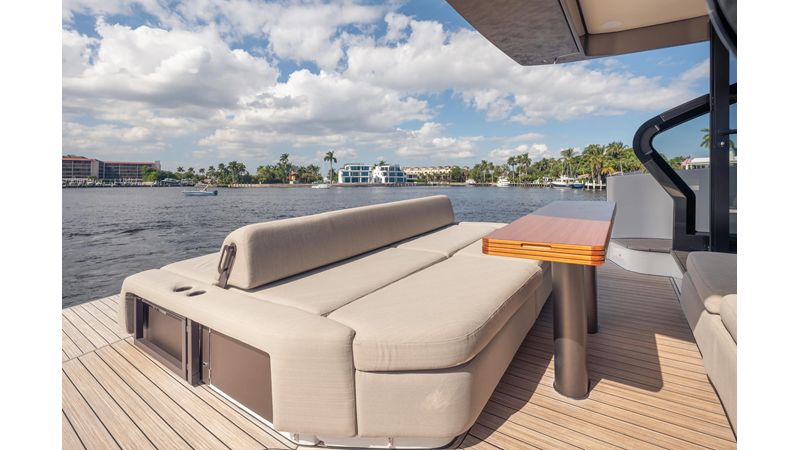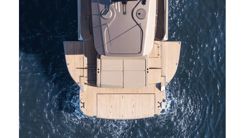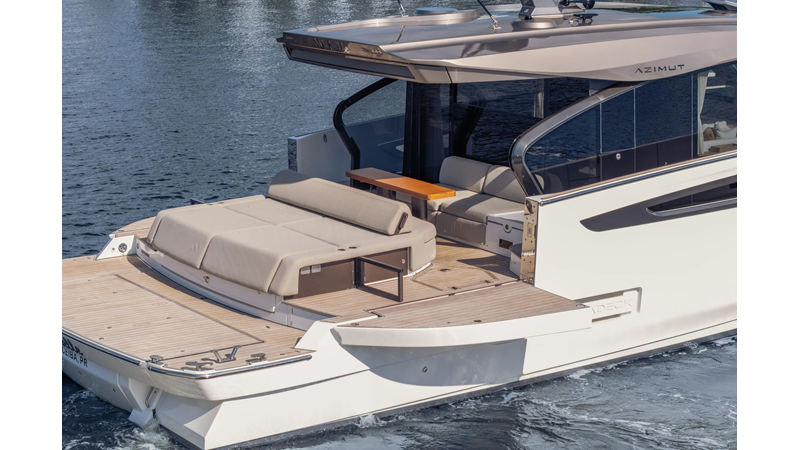 The first model of the first hybrid Series for families developed by Azimut offers seamless cruises with a barrierless, authentic contact with the sea. Embracing a more conscious relationship with nature, Seadeck 6 is the first yacht of the most efficient Series of boats ever designed, thanks to technological solutions aimed at reducing emissions by up to 40% and the Fun Island, a reinvented cockpit that embraces the sea, an unprecedented sea-level outdoor lounge for limitless contact with the water, maximizing the relationship with the ocean to offer an immersive and harmonious natural experience all around and a lifestyle based on well-being.