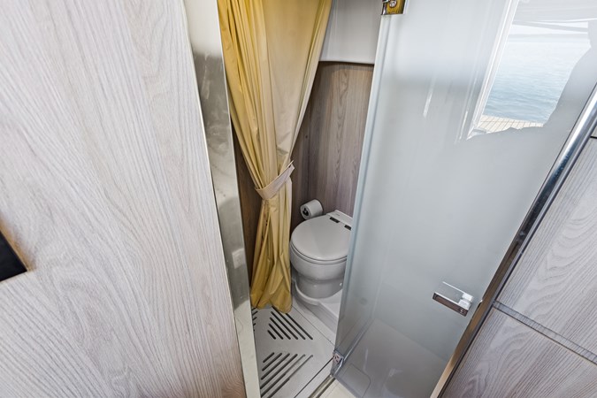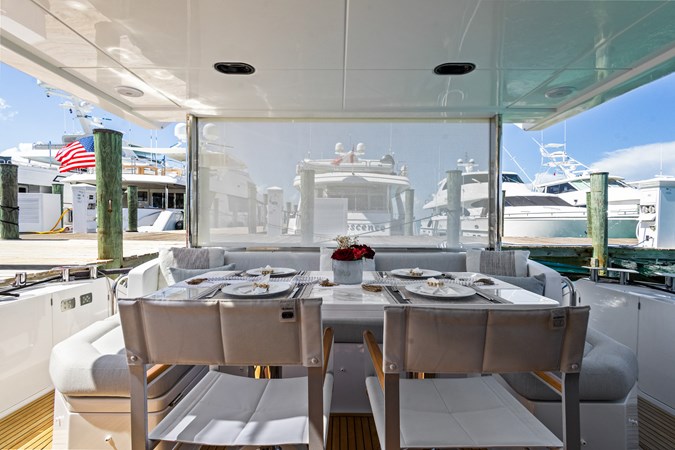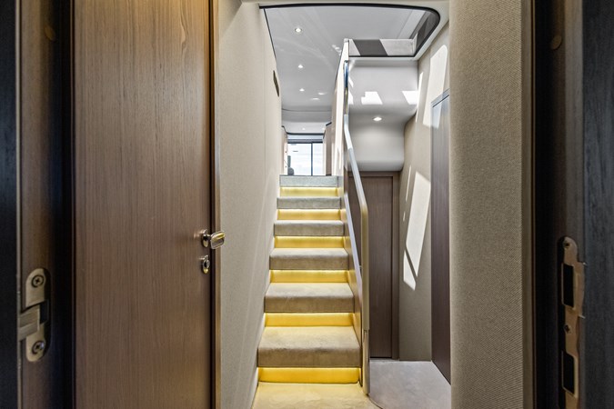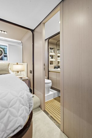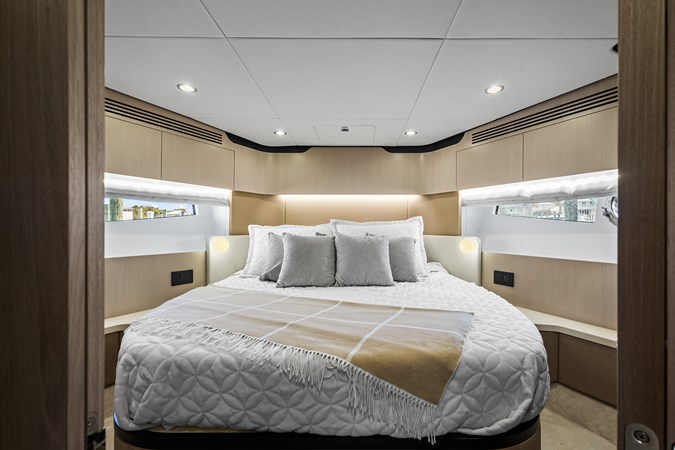 Azimut’s renowned design is evident the moment you step aboard. Her sleek exterior profile is complemented by expansive hull-side windows that flood the interior with natural light, creating a bright and contemporary atmosphere throughout the salon and dining areas. The layout is thoughtfully designed for both entertaining and extended cruising, offering generous social spaces on the flybridge, aft deck, and foredeck, along with comfortable and private accommodations below.