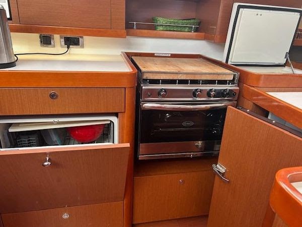 AIR CONDITIONING 150 HP MAIN ENGINE GENERATOR DUAL HELM SINGLE RUDDER DUAL HELM STEERING LOUNGING ZONE BEHIND HELM SATATIONS FOLDING DOWN TRANSOM SWIM PLATFORM TRANSOM GARAGE STAINLESS DAVITS W/SOLAR PANELS & WEATHER STATION COCKPIT ARCH FOR MAIN SHEET BLOCKS & DODGER/BIMINI SUPPORT TEAK DECK AND TEAK COCKPIT FLOOR & SEATS ANCHOR BOW SPRIT W/ROLLER & CODE 0 TACK POINT STAINLESS STEEL DELTA ANCHOR W/DELUXE SWIVEL
