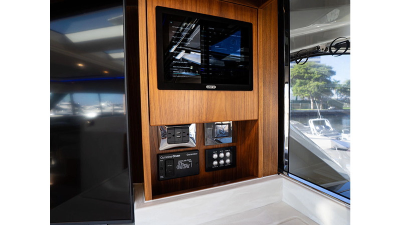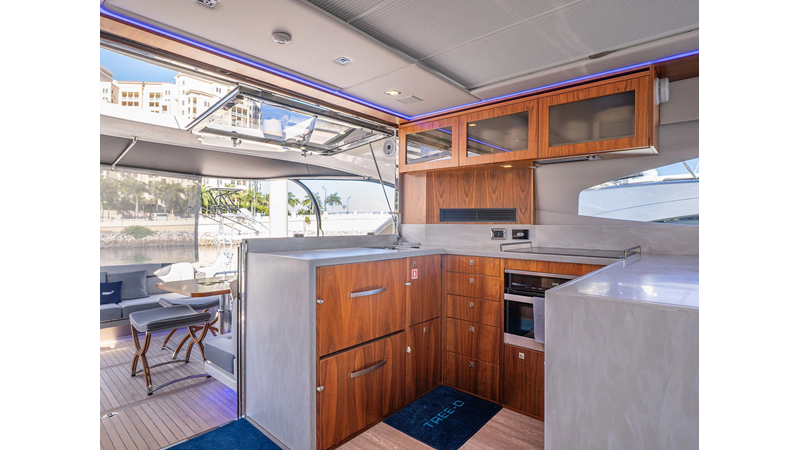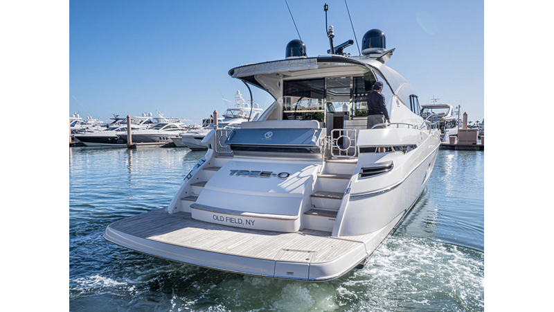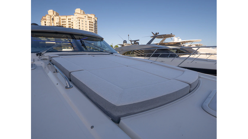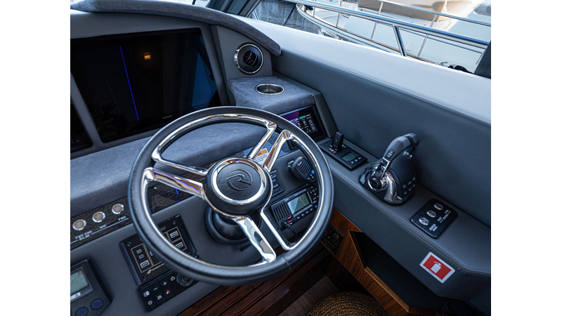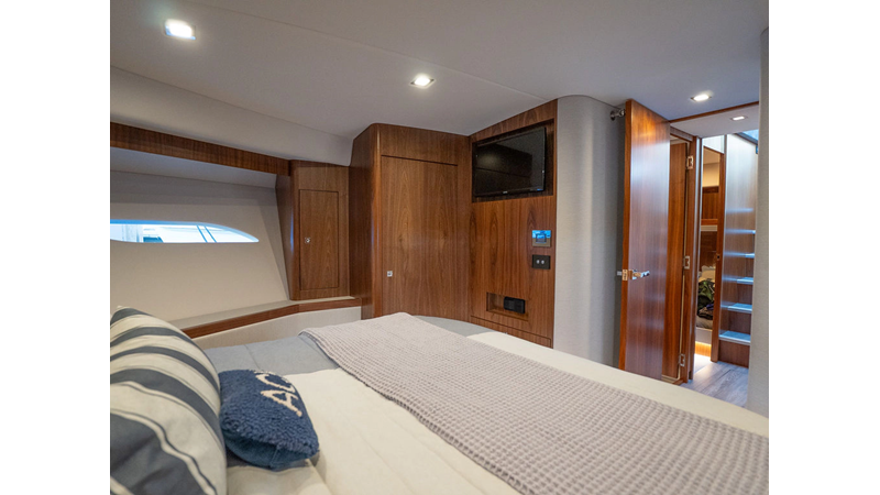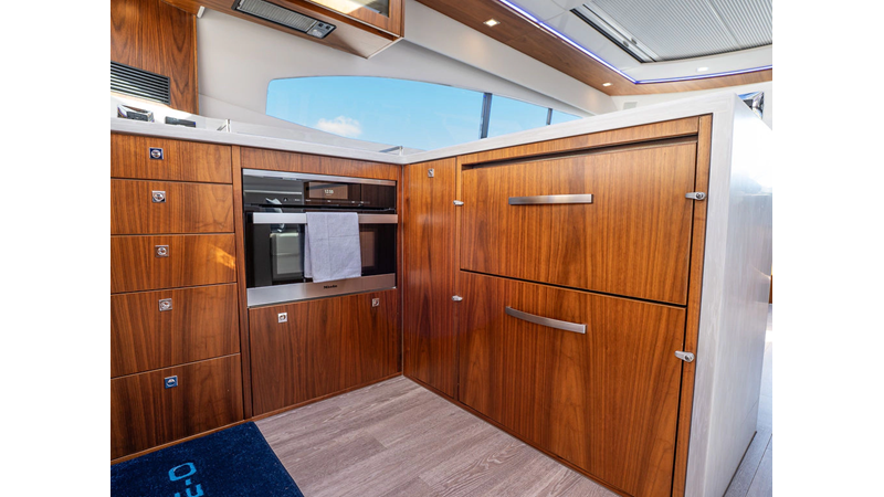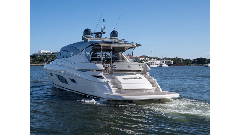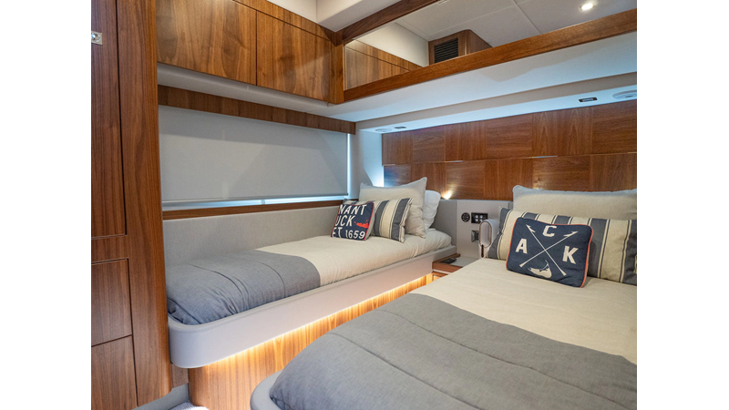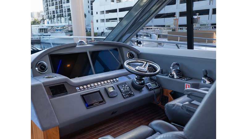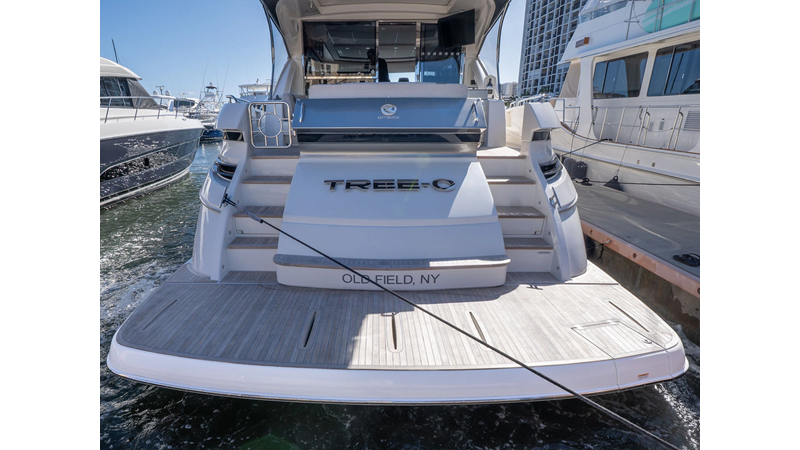 Equipped as follows: Upper Galley Three Stateroom layout, Crew Cabin Brigg Tender with Honda O/B. Gloss Walnut Gloss interior, Upholstery Convertible Dinette table, Upgrade Generator, Seakeeper 9 Gyro , KVH 7 with second dome, Targa uplighting, Underwater lighting 4 transom-2 Sea Blaze blue /white, FLIR thermal camera M232, AIS 800 Transceiver, Water Maker Blue Water legend 950, Awning camera, Anchor camera, Engine Room Camera, Tropical AC, Rear Lounge Cockpit, Hi Lo Cockpit table, Wine Cooler, Port and Starboard entry doors, Garmin Radar GRM Fathom chirp, 2×17" Volvo Glass bridge screens 8617 inc GPS & grid, Sounder Transducer CHIRP Garmin GSD 26 with sounder , Auto Pilot integrated into Glass bridge, Foredeck Lighting (6) each side Hella easy fit blue, Reinforced Transom cleats, 2 Garmin GC200 under Targa wing port & stbd, Dock Boost system 2x DBT 15’s, Starboard side wet bar Platinum painted in place of standard lounge,2 Cockpit docking stations with Joy Stick Controls, Bow Thruster, Solid Surface Bench Tops, Galley ware package, Bath ware Package, Mattress protectors for all cabins including Crew Cabin, Double interior power points with USB, Upholstery Upgrade to all interior fabrics, Bed side Inlays, Salon and Galley stairs to include lower landing area fllors, Salon Roller blinds white sheer, Master Stateroom white blackout, Additional fitted sheets to master, Additional fitted sheet to lower lounge, Mattress protectors, Upgraded 100% Wool Carpets Stateroom, Upgrade to Sunbrella in Cockpit and Forward sun lounge
