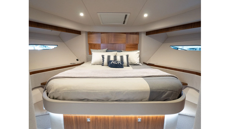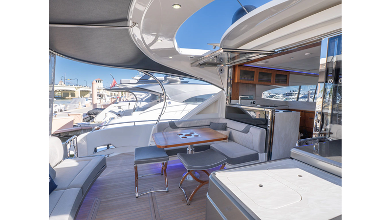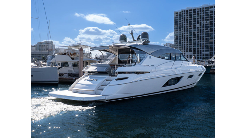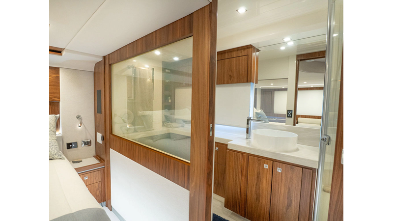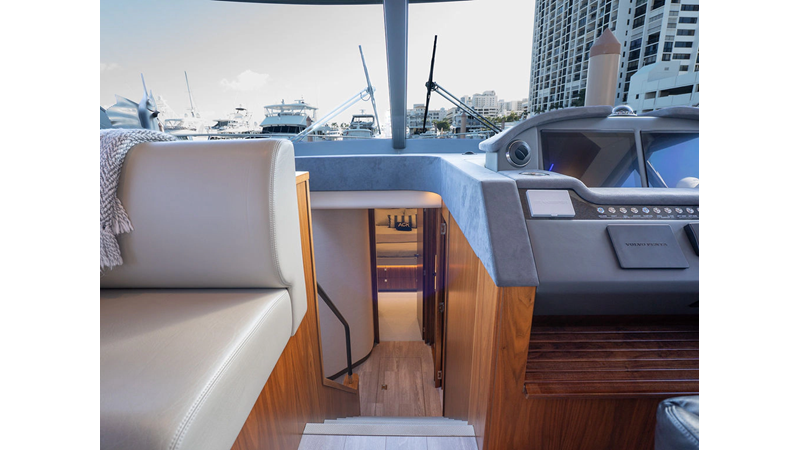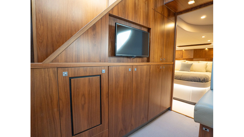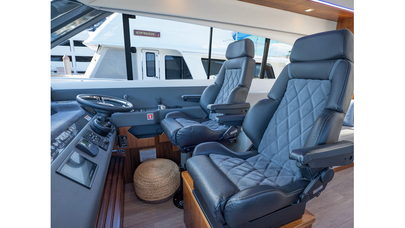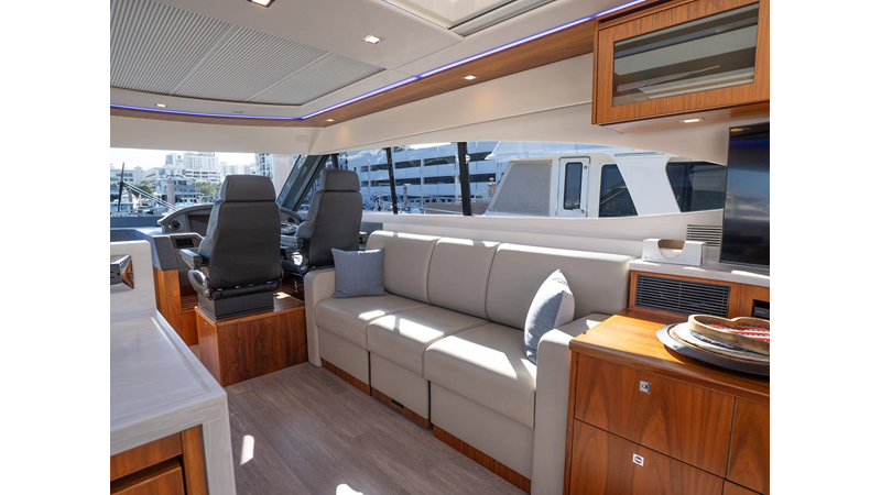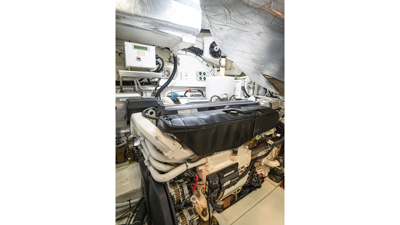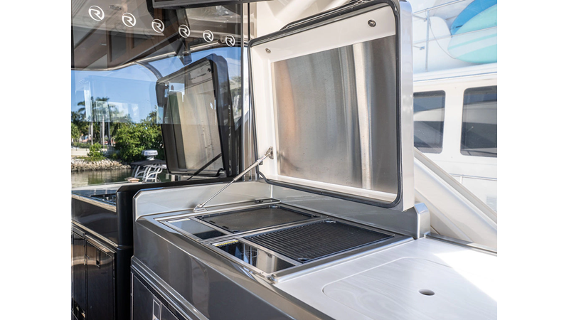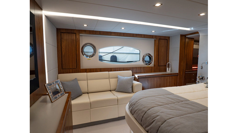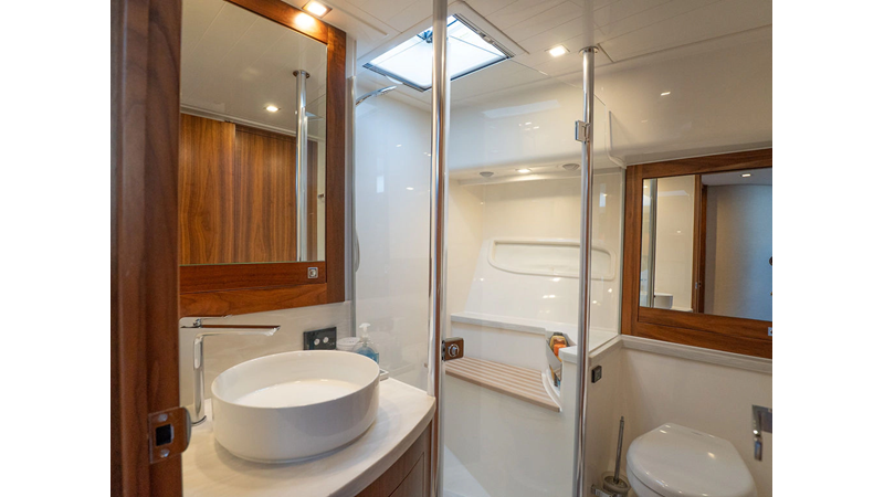 Equipped as follows: Upper Galley Three Stateroom layout, Crew Cabin Brigg Tender with Honda O/B. Gloss Walnut Gloss interior, Upholstery Convertible Dinette table, Upgrade Generator, Seakeeper 9 Gyro , KVH 7 with second dome, Targa uplighting, Underwater lighting 4 transom-2 Sea Blaze blue /white, FLIR thermal camera M232, AIS 800 Transceiver, Water Maker Blue Water legend 950, Awning camera, Anchor camera, Engine Room Camera, Tropical AC, Rear Lounge Cockpit, Hi Lo Cockpit table, Wine Cooler, Port and Starboard entry doors, Garmin Radar GRM Fathom chirp, 2×17" Volvo Glass bridge screens 8617 inc GPS & grid, Sounder Transducer CHIRP Garmin GSD 26 with sounder , Auto Pilot integrated into Glass bridge, Foredeck Lighting (6) each side Hella easy fit blue, Reinforced Transom cleats, 2 Garmin GC200 under Targa wing port & stbd, Dock Boost system 2x DBT 15’s, Starboard side wet bar Platinum painted in place of standard lounge,2 Cockpit docking stations with Joy Stick Controls, Bow Thruster, Solid Surface Bench Tops, Galley ware package, Bath ware Package, Mattress protectors for all cabins including Crew Cabin, Double interior power points with USB, Upholstery Upgrade to all interior fabrics, Bed side Inlays, Salon and Galley stairs to include lower landing area fllors, Salon Roller blinds white sheer, Master Stateroom white blackout, Additional fitted sheets to master, Additional fitted sheet to lower lounge, Mattress protectors, Upgraded 100% Wool Carpets Stateroom, Upgrade to Sunbrella in Cockpit and Forward sun lounge