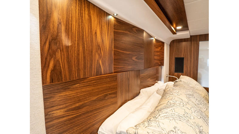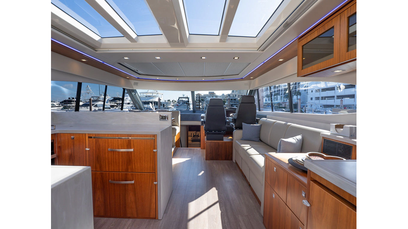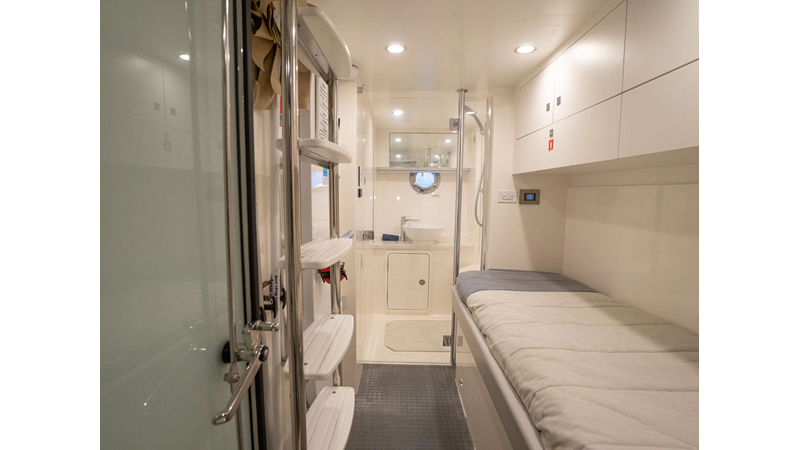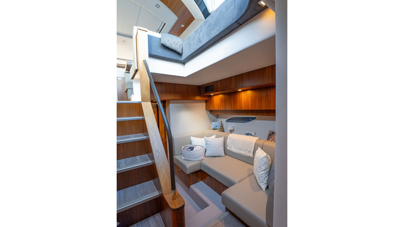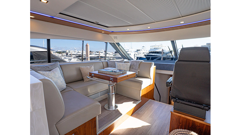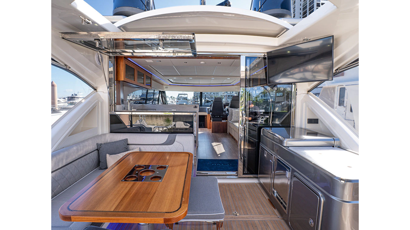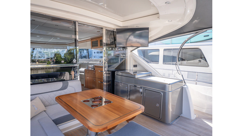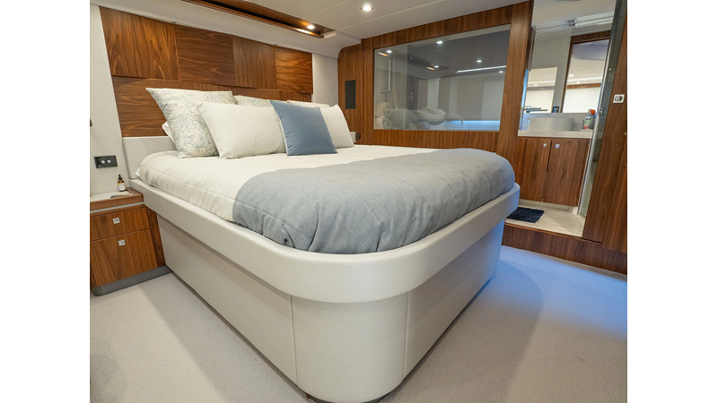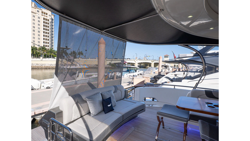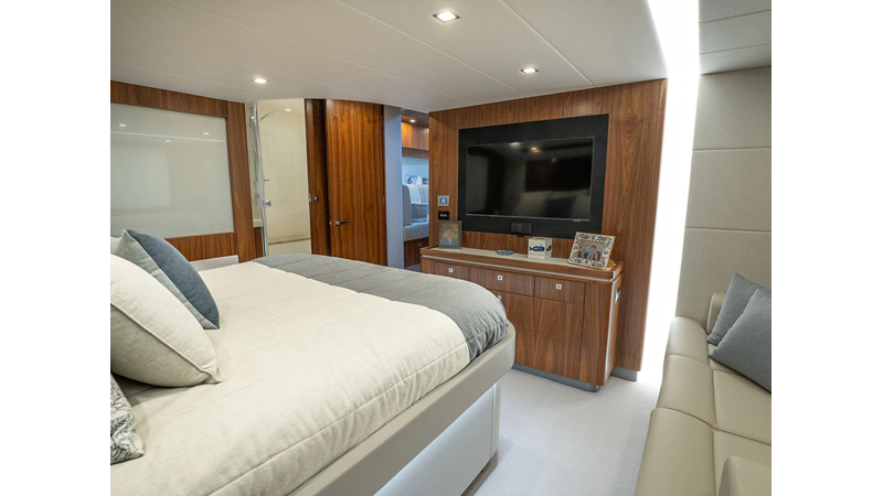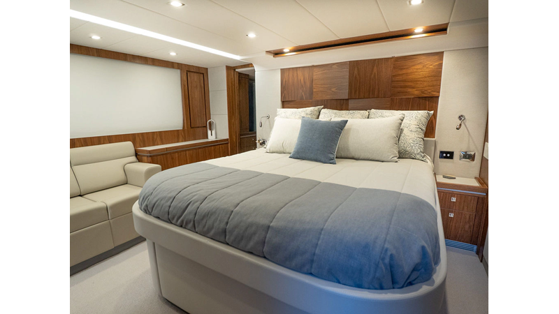Equipped as follows: Upper Galley Three Stateroom layout, Crew Cabin Brigg Tender with Honda O/B. Gloss Walnut Gloss interior, Upholstery Convertible Dinette table, Upgrade Generator, Seakeeper 9 Gyro , KVH 7 with second dome, Targa uplighting, Underwater lighting 4 transom-2 Sea Blaze blue /white, FLIR thermal camera M232, AIS 800 Transceiver, Water Maker Blue Water legend 950, Awning camera, Anchor camera, Engine Room Camera, Tropical AC, Rear Lounge Cockpit, Hi Lo Cockpit table, Wine Cooler, Port and Starboard entry doors, Garmin Radar GRM Fathom chirp, 2×17" Volvo Glass bridge screens 8617 inc GPS & grid, Sounder Transducer CHIRP Garmin GSD 26 with sounder , Auto Pilot integrated into Glass bridge, Foredeck Lighting (6) each side Hella easy fit blue, Reinforced Transom cleats, 2 Garmin GC200 under Targa wing port & stbd, Dock Boost system 2x DBT 15’s, Starboard side wet bar Platinum painted in place of standard lounge,2 Cockpit docking stations with Joy Stick Controls, Bow Thruster, Solid Surface Bench Tops, Galley ware package, Bath ware Package, Mattress protectors for all cabins including Crew Cabin, Double interior power points with USB, Upholstery Upgrade to all interior fabrics, Bed side Inlays, Salon and Galley stairs to include lower landing area fllors, Salon Roller blinds white sheer, Master Stateroom white blackout, Additional fitted sheets to master, Additional fitted sheet to lower lounge, Mattress protectors, Upgraded 100% Wool Carpets Stateroom, Upgrade to Sunbrella in Cockpit and Forward sun lounge