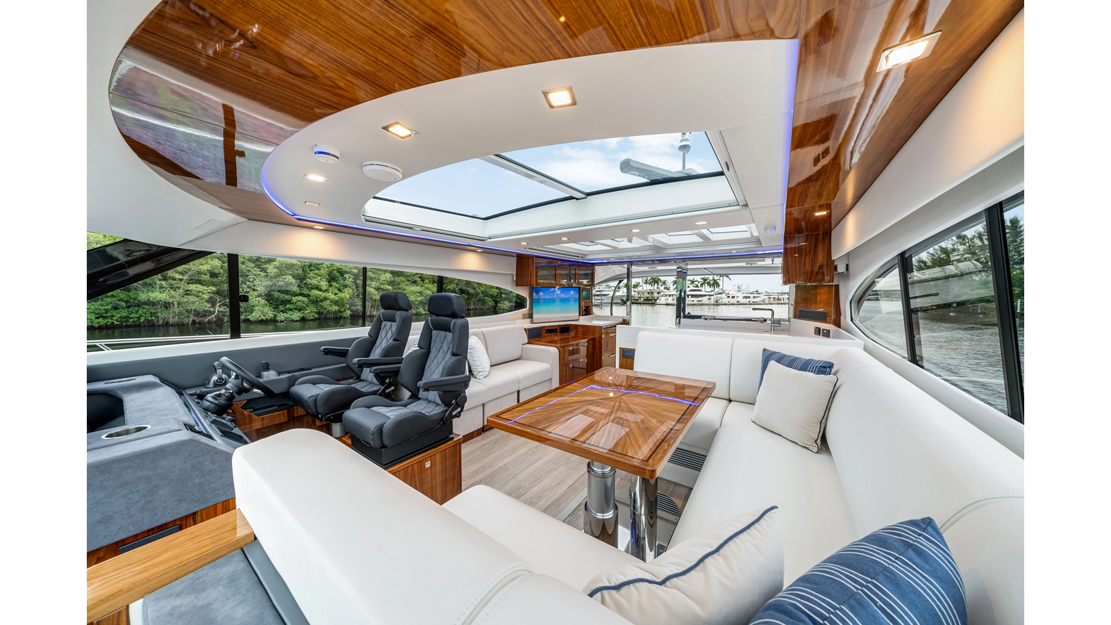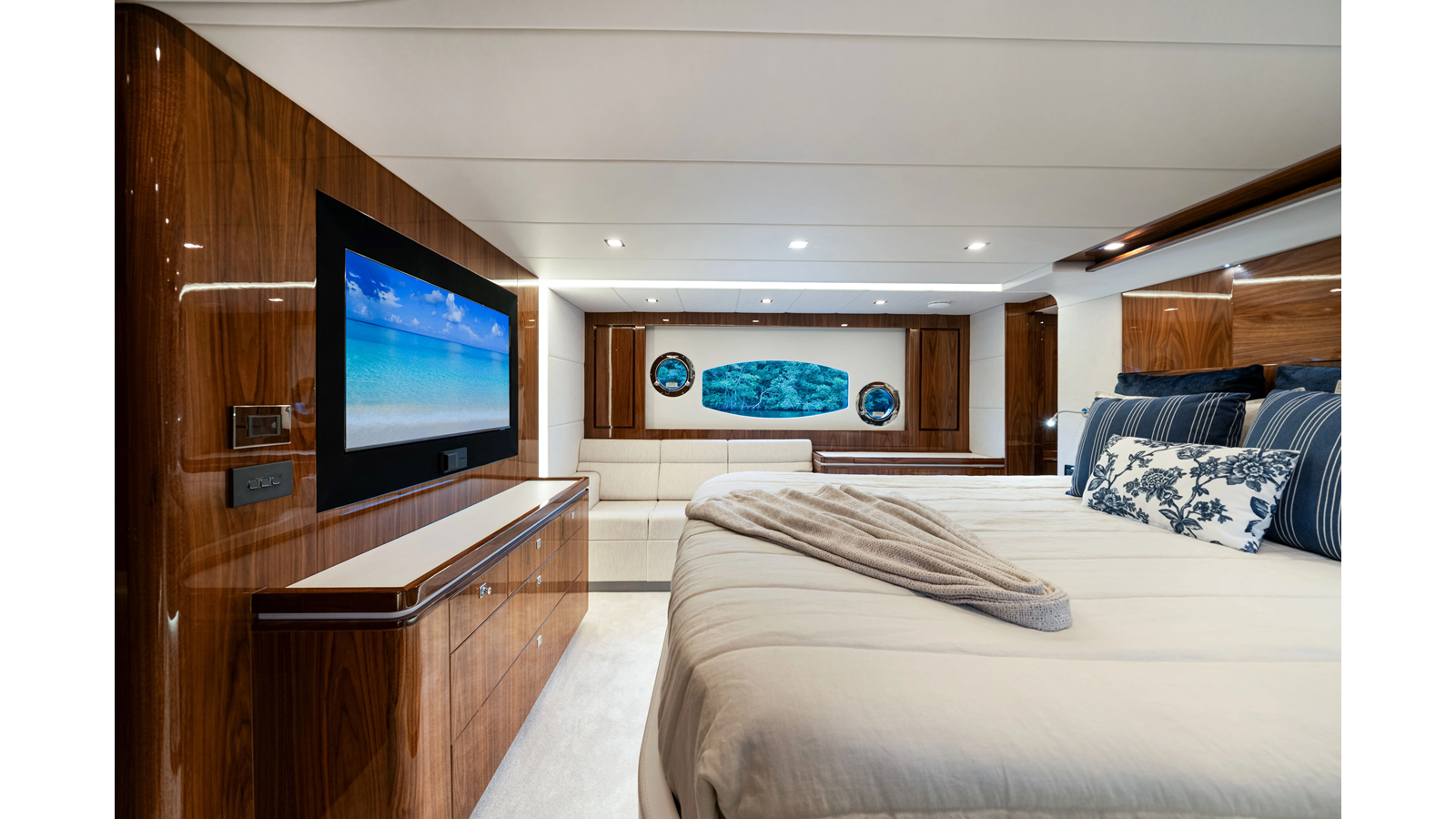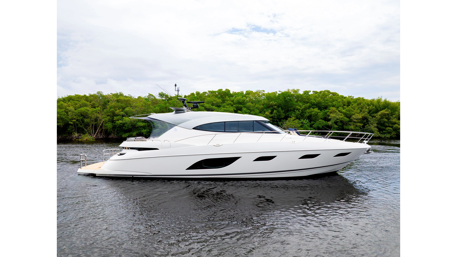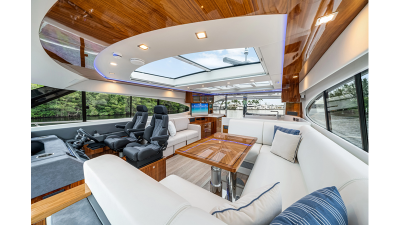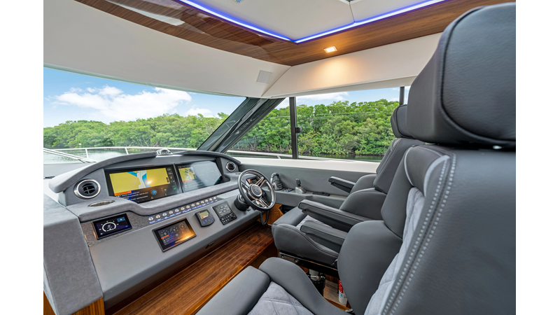 Introducing the Platinum Edition Riviera 6000 Sport Yacht! Featuring a long list of cosmetic and equipment upgrades, this is a fresh new take on a proven world-beater. We have this new, custom-built 6000 Sport Yacht. We spec’d her with the preferred lower lounge/three cabin/three head layout, high gloss walnut interior joinerwork, and a very long list of factory and custom options we would love to discuss with you.