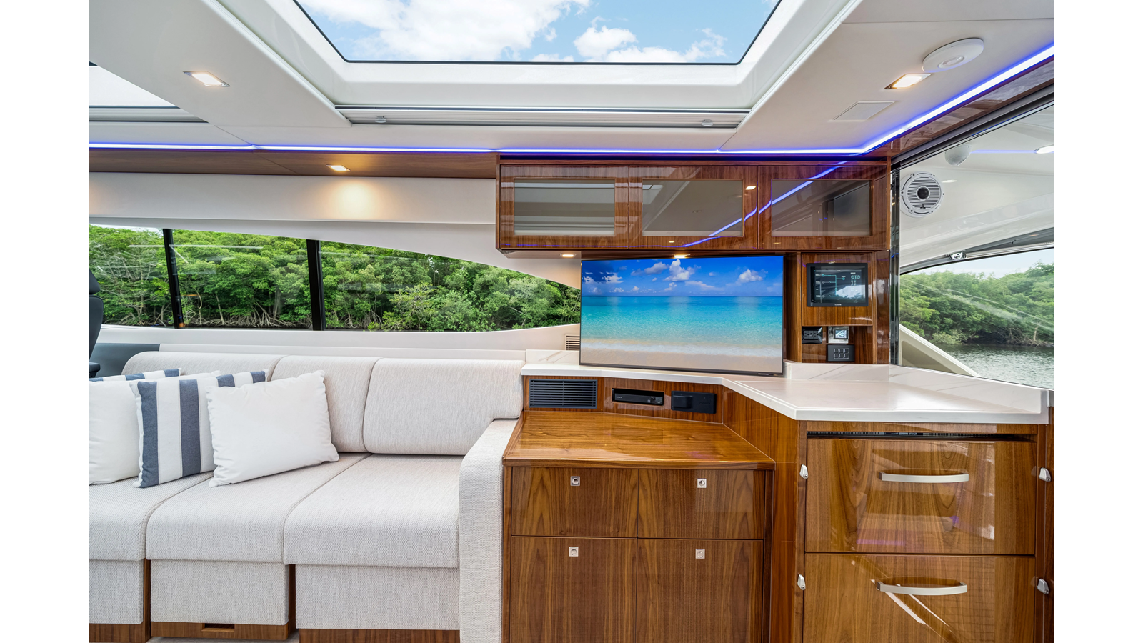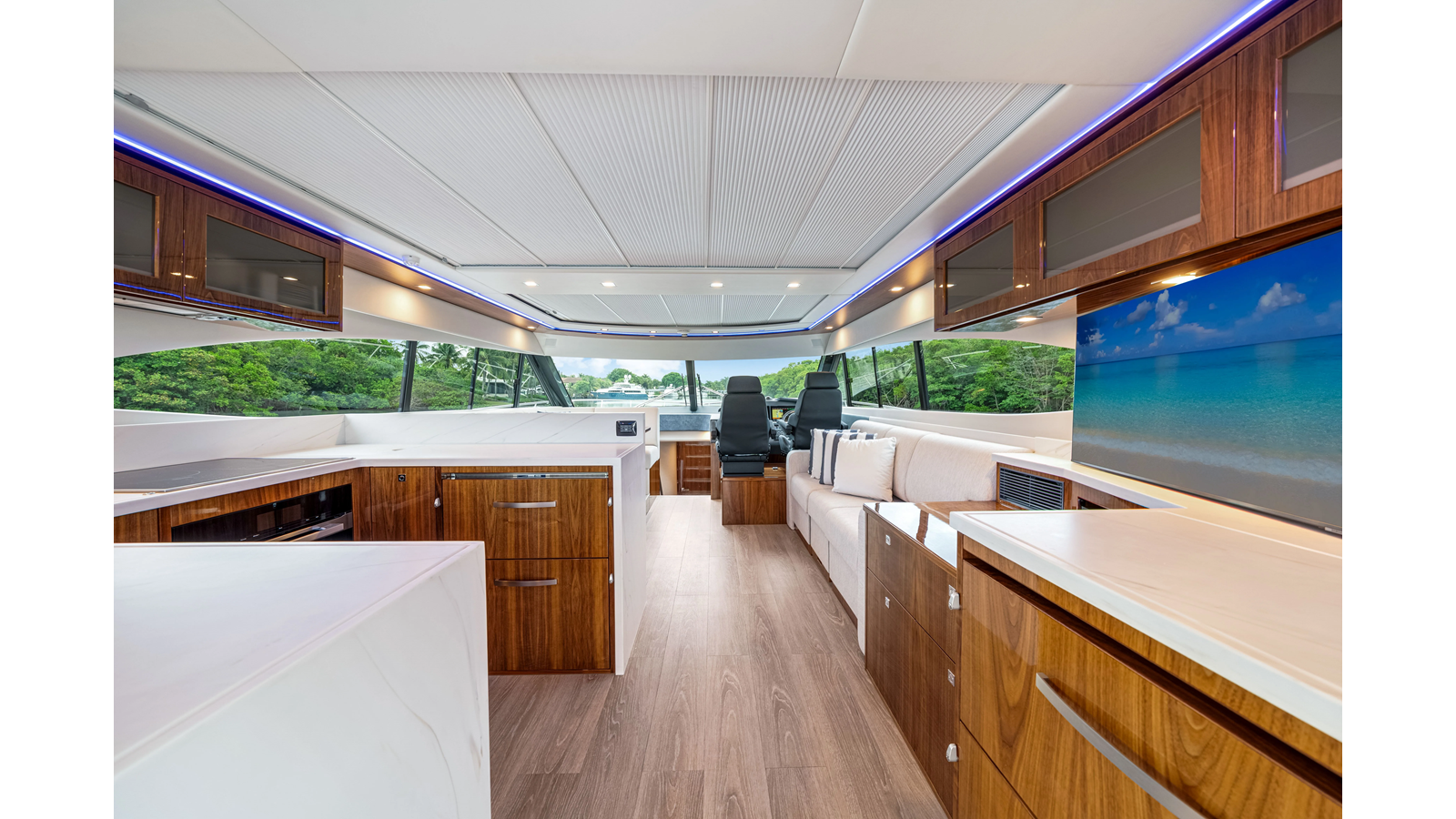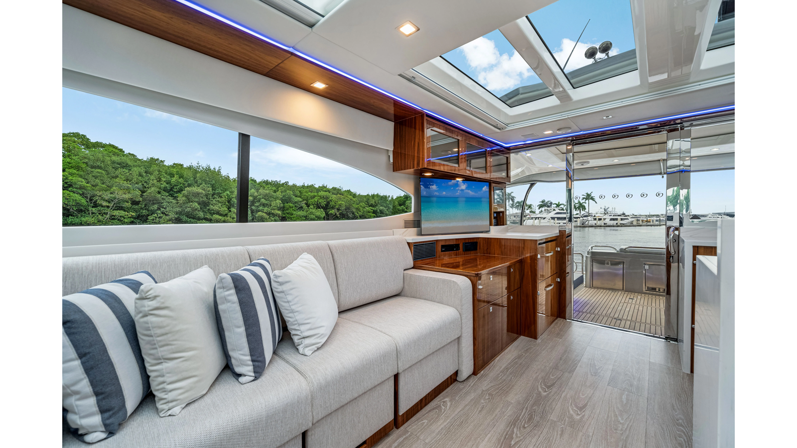 Introducing the Platinum Edition Riviera 6000 Sport Yacht! Featuring a long list of cosmetic and equipment upgrades, this is a fresh new take on a proven world-beater. We have this new, custom-built 6000 Sport Yacht. We spec’d her with the preferred lower lounge/three cabin/three head layout, high gloss walnut interior joinerwork, and a very long list of factory and custom options we would love to discuss with you.