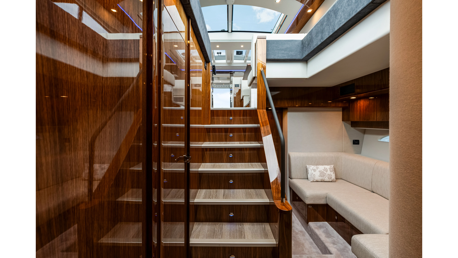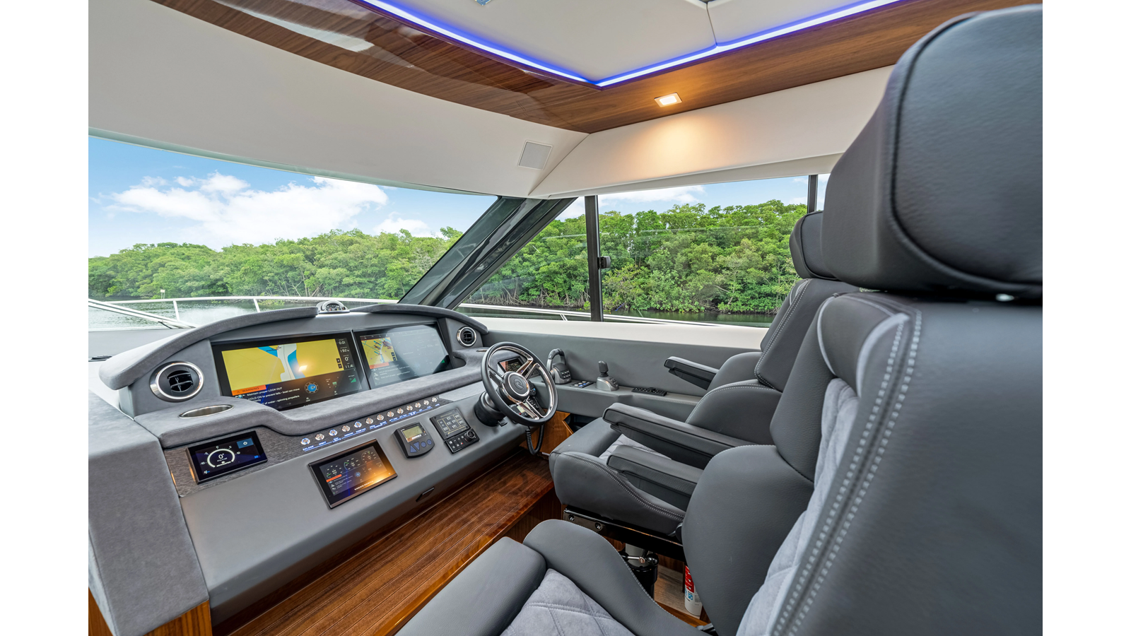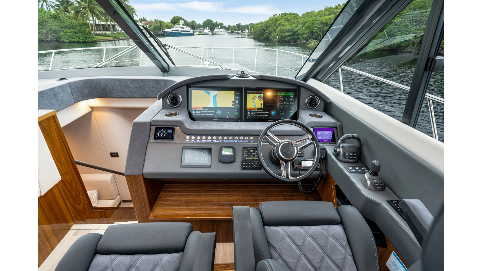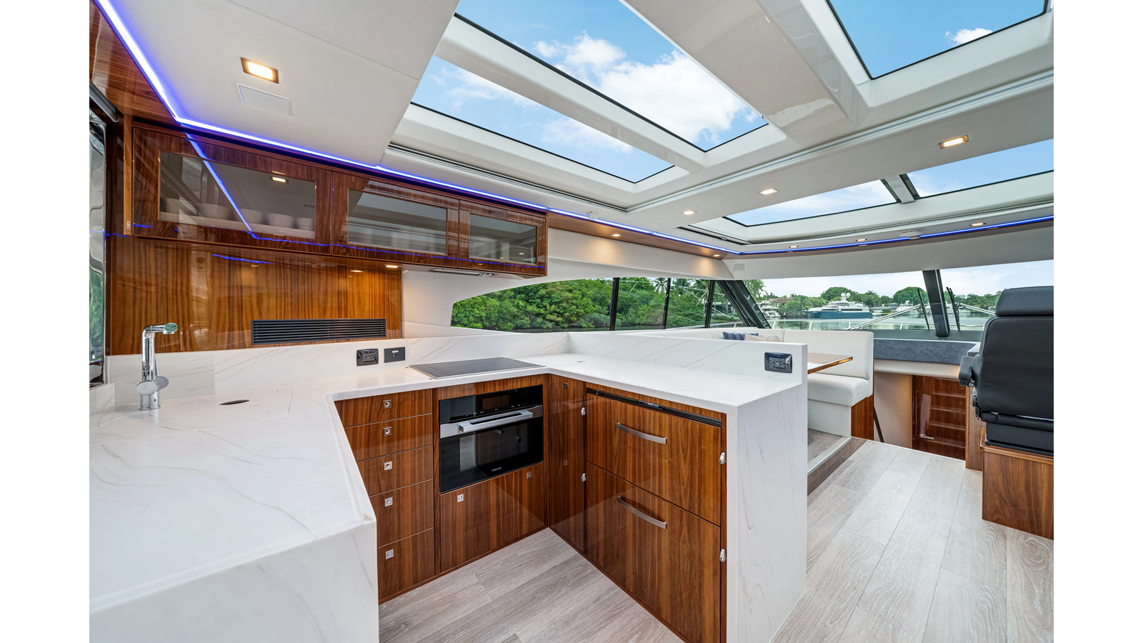 Introducing the Platinum Edition Riviera 6000 Sport Yacht! Featuring a long list of cosmetic and equipment upgrades, this is a fresh new take on a proven world-beater. We have this new, custom-built 6000 Sport Yacht. We spec’d her with the preferred lower lounge/three cabin/three head layout, high gloss walnut interior joinerwork, and a very long list of factory and custom options we would love to discuss with you.