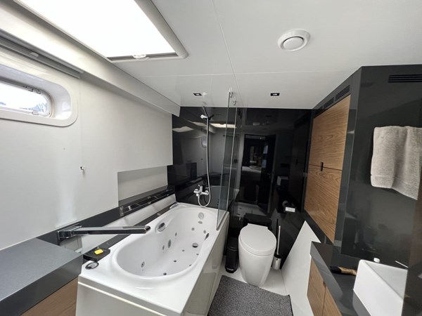 This Sunreef 60 Loft Sailing Catamaran is equipped with top-of-the-line cruising equipment, ensuring the highest standards of safety. This includes an external thermal and night vision camera, as well as 8 personal AIS and man overboard search cameras. Each cabin boasts large window areas, allowing for breathtaking sea views right from the comfort of your bed.