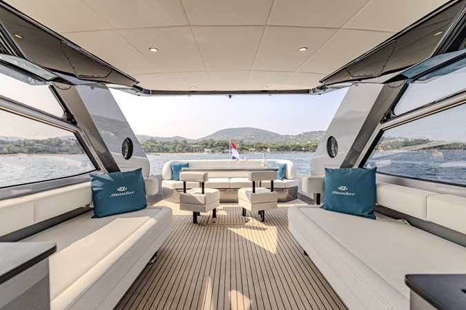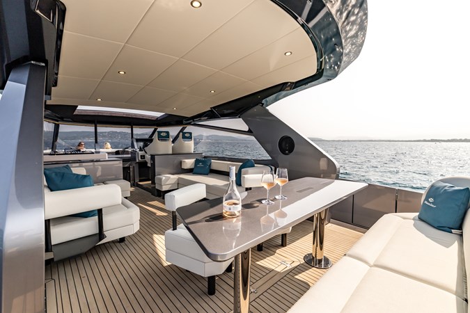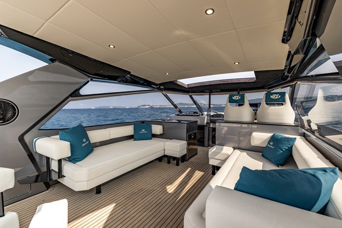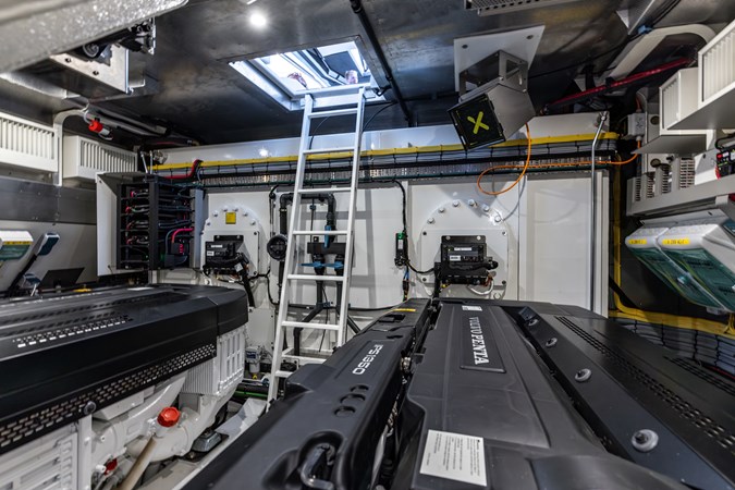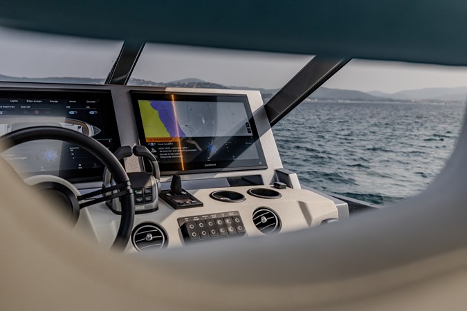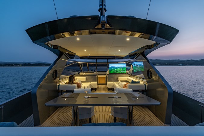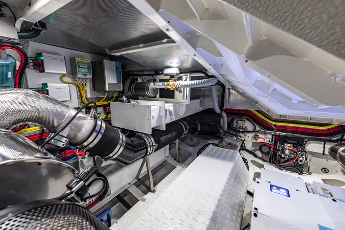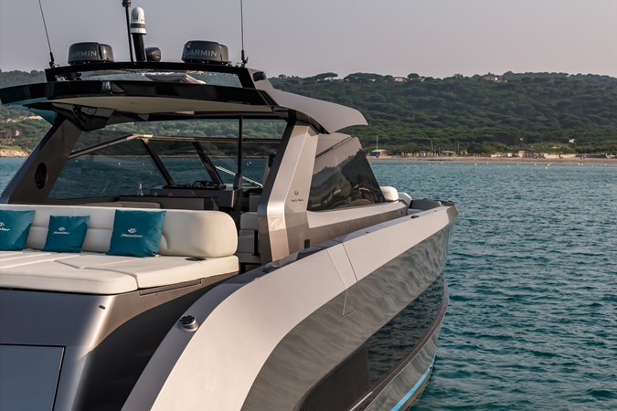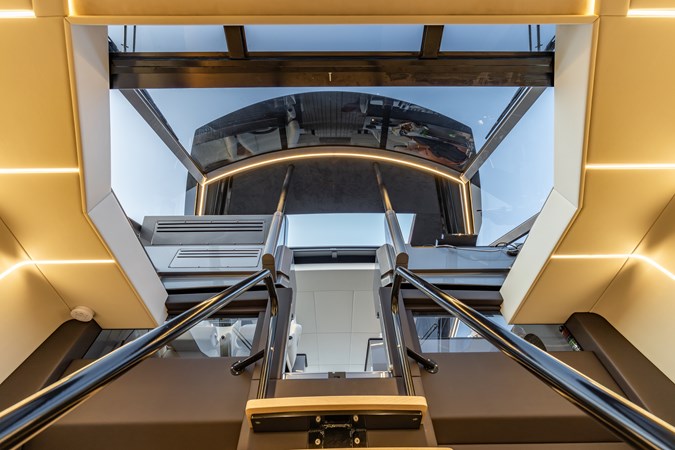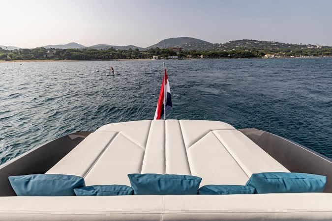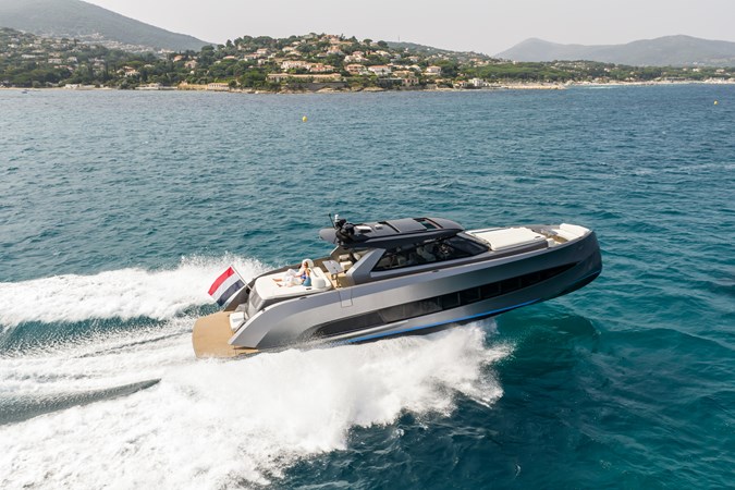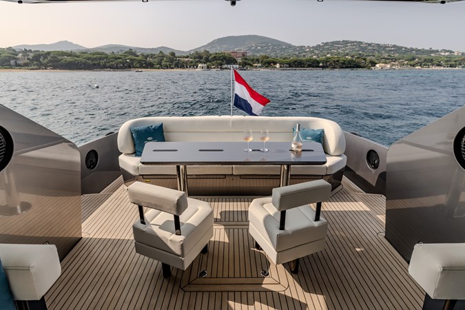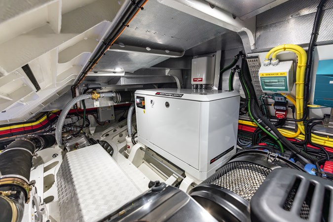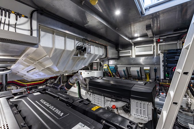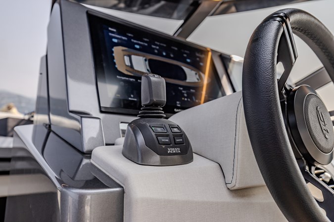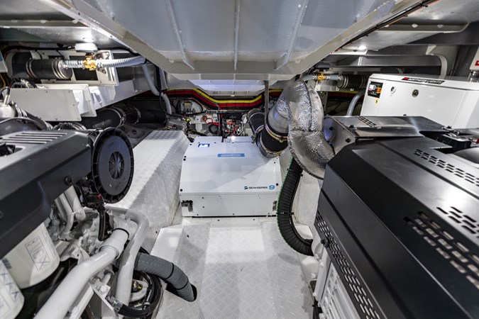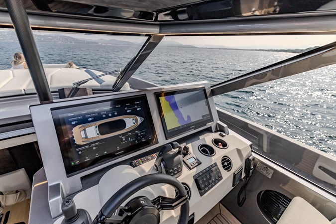 Power & Stability: Equipped with Twin Volvo Penta IPS 1350 engines , it hits a blistering top speed of 35.5 knots . To keep things smooth at anchor or at sea, it’s fitted with a Seakeeper 9 gyroscopic stabilizer .