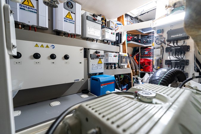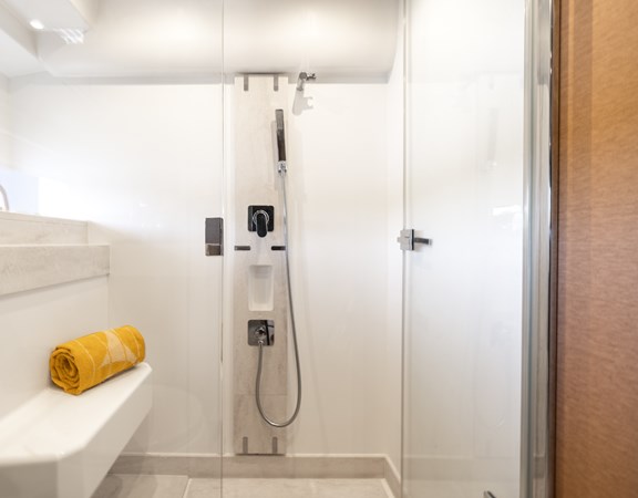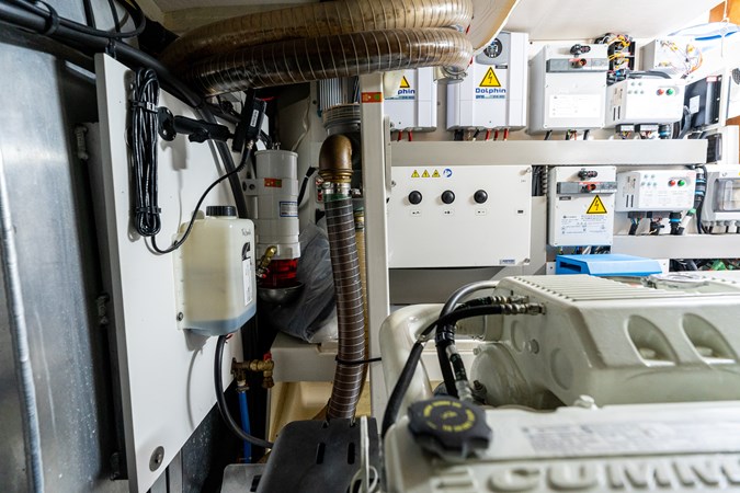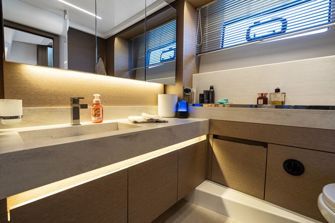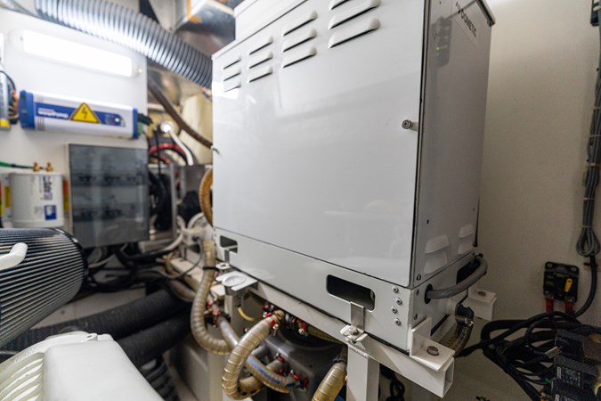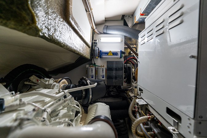 Powered by twin Cummins QSC 8.3 600HP engines with joystick control and a bow thruster, this yacht delivers precise handling in tight marinas—even in wind and current. The tropical-grade 87,000 BTU air-conditioning system ensures year-round comfort, fully integrated with the yacht’s intuitive Ship Control system for centralized management of onboard systems.