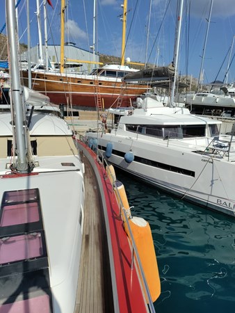 Equipped with 3 control stations, bow and stern thrusters, a remote control for an anchor winch, furling genoa, furling main sail (into a boom) she is easy to control and maneuver.