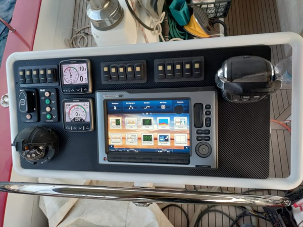 AIS, autopilot, echo sounder, GPS , harbour handbooks, Intercom, GPS plotter , radar , rev indicator (Volvo Penta), rudder angle indicator, sea charts, VHF radio , wind indicator