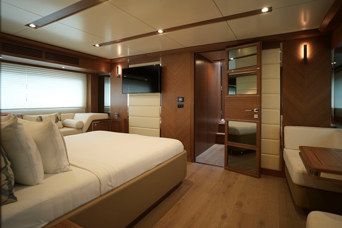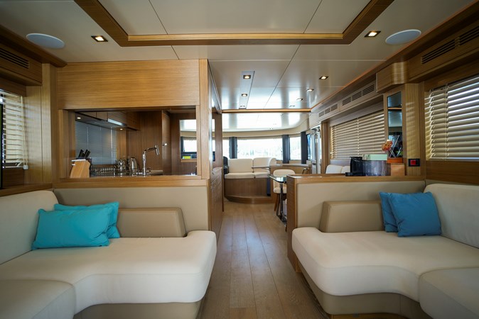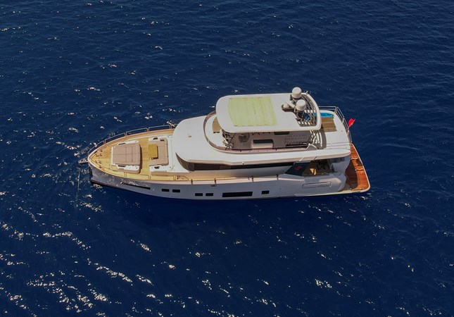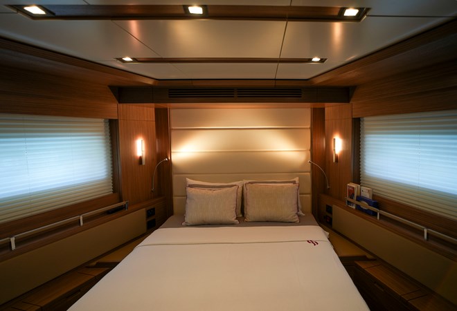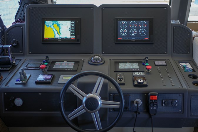 Key features include a full Garmin navigation suite, Sidepower bow and stern thrusters, a Hidromar watermaker, and a fully equipped galley. With her stylish and spacious living areas, she is an ideal choice for extended cruising in absolute comfort.