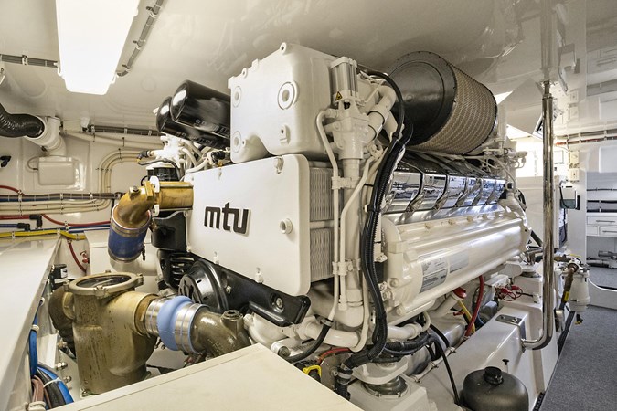 Now referred to as the new 65 model by Hatteras, this vessel represents the pinnacle of the later resin-infused generation of the Hatteras fleet. Exceeding in its category powered by the upgraded MTU 12V-2000 engine at 1900 BHP, along by a chrome package.