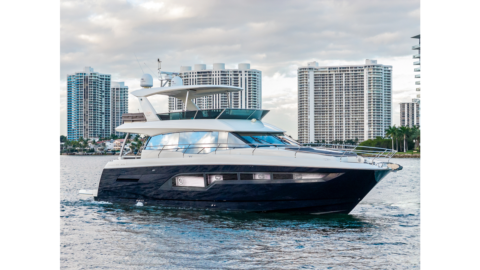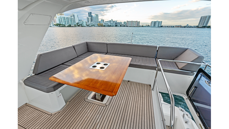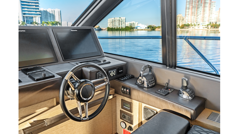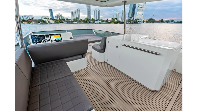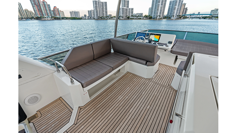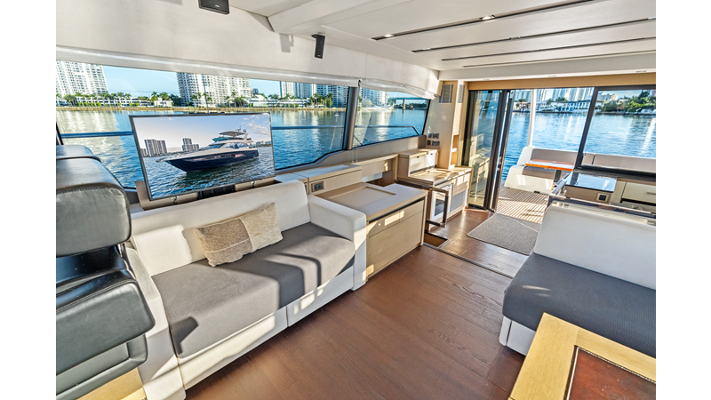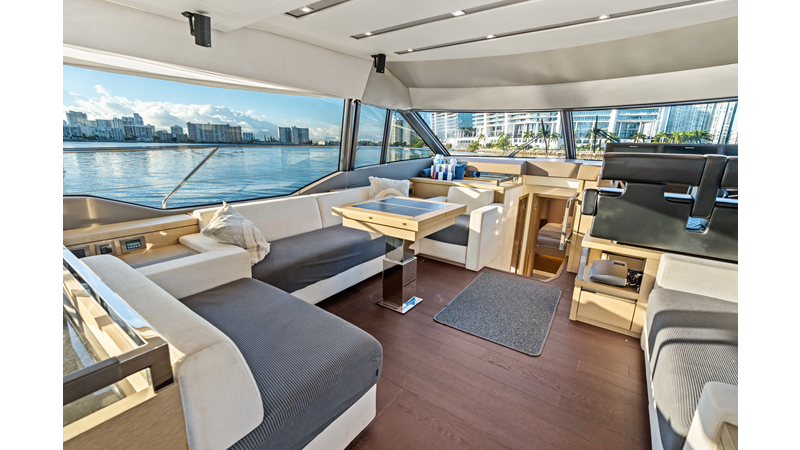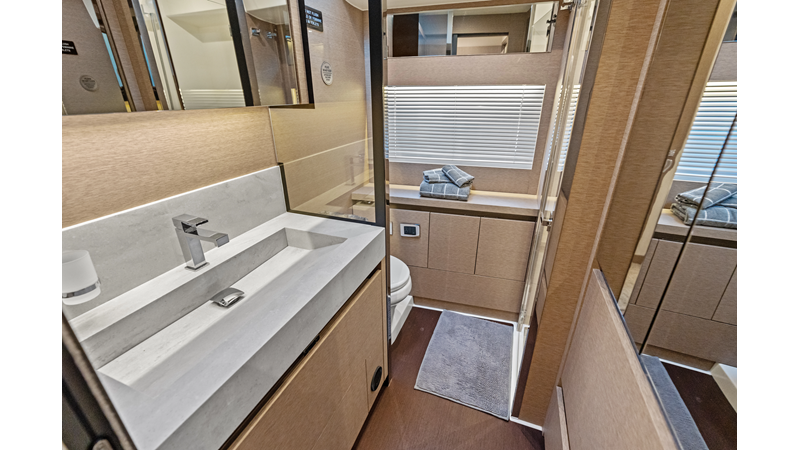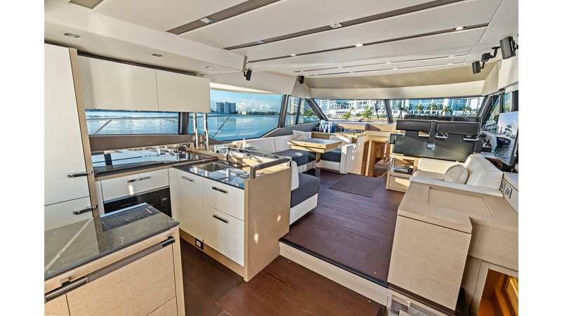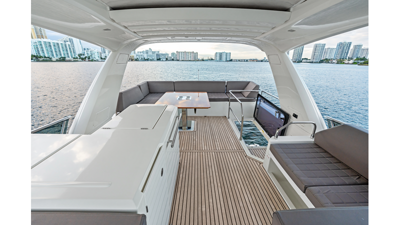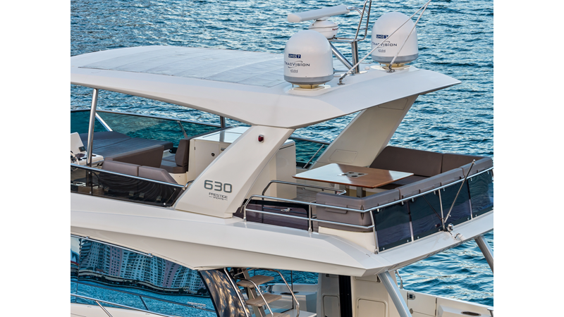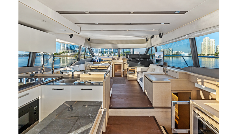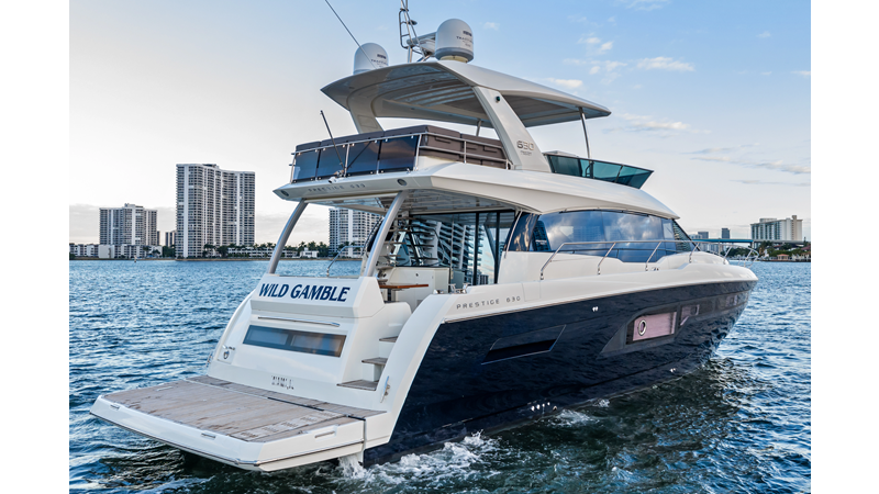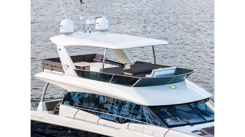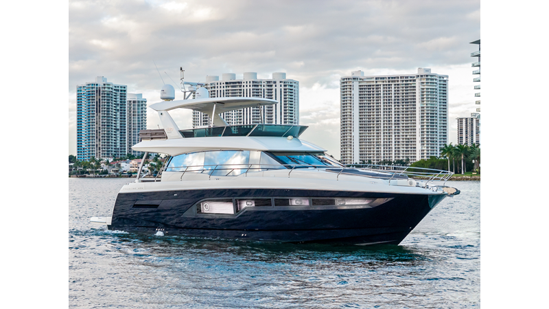 This 2018 Prestige 630 Flybridge is a highly desirable luxury motor yacht offering exceptional volume, a three-stateroom, three-head layout, and a full-beam master stateroom. With her expansive flybridge, aft galley configuration, and owner operator- friendly design, she delivers the space and comfort of a larger yacht in a highly efficient 63-foot platform.
