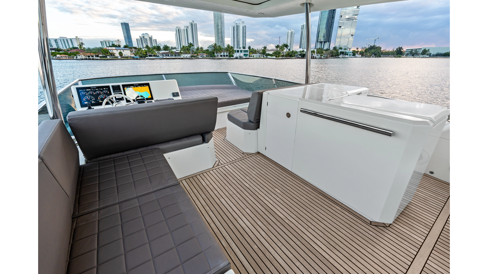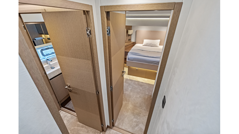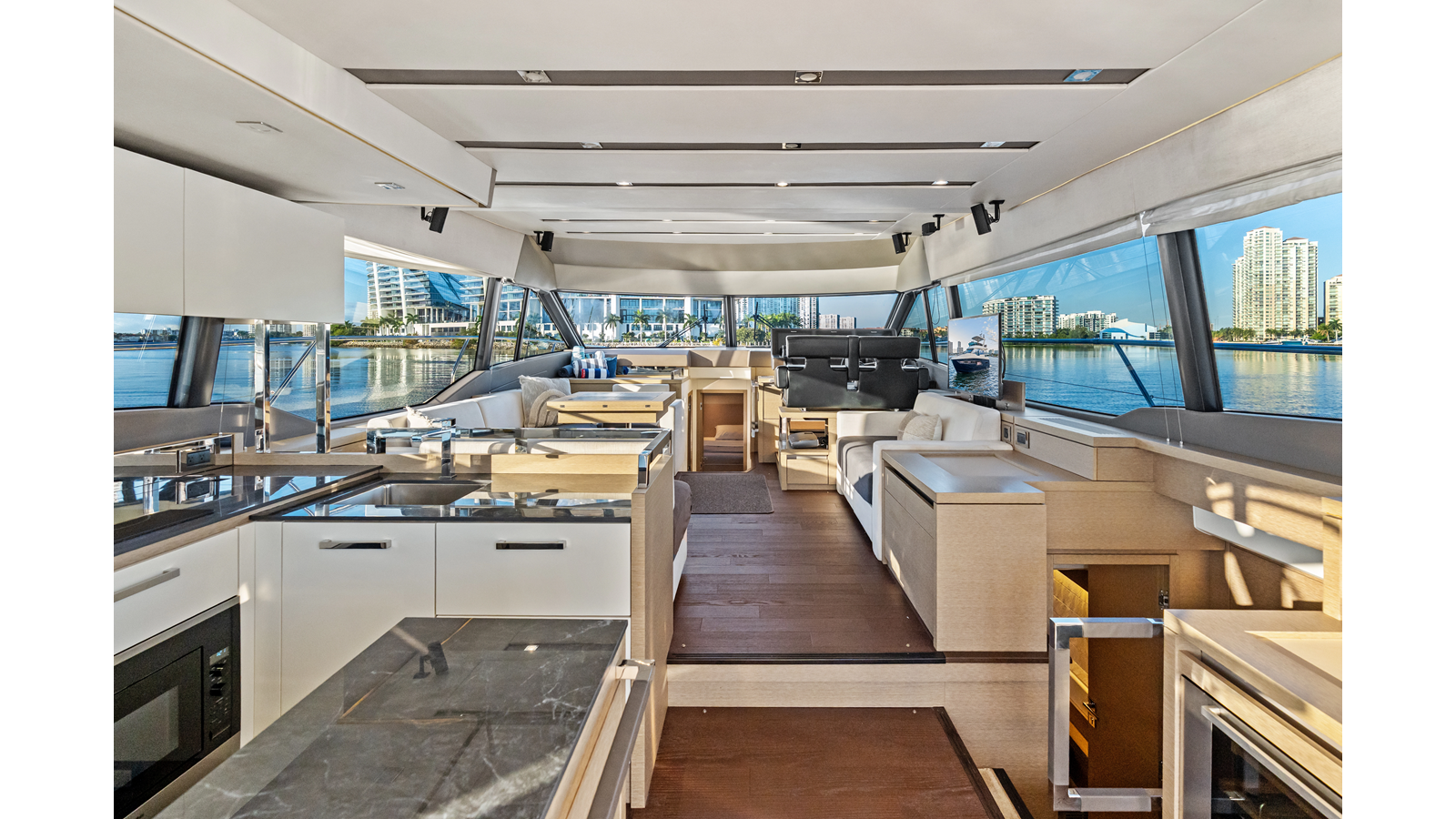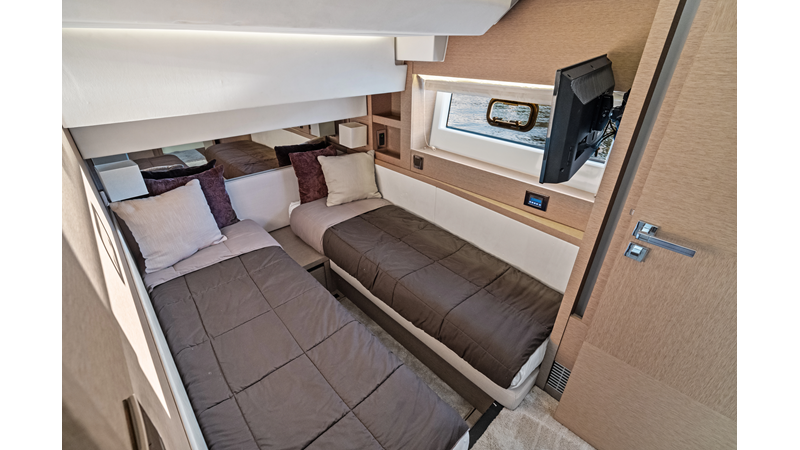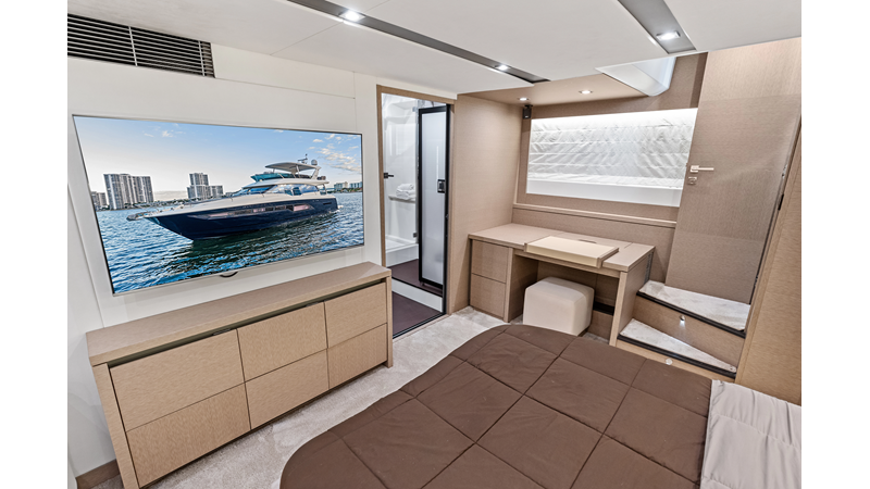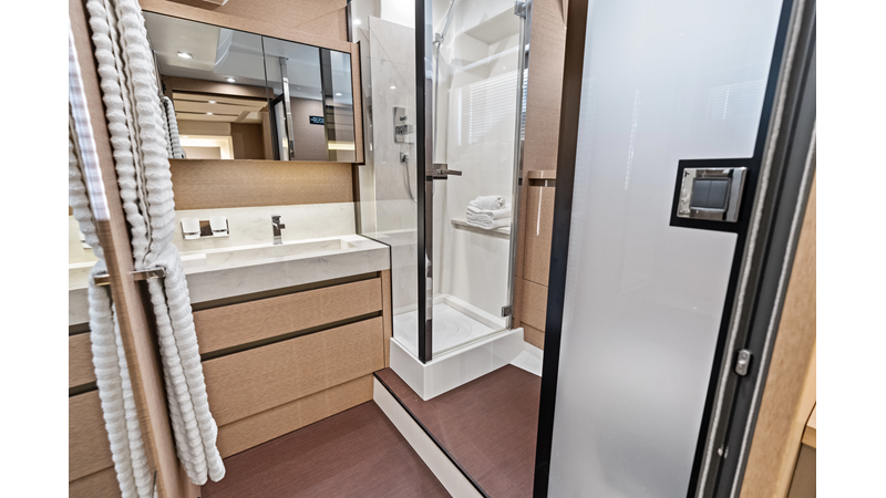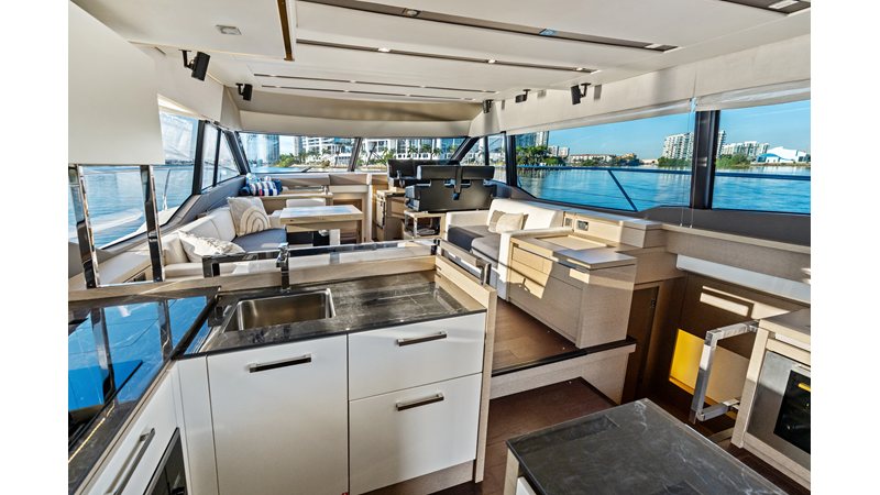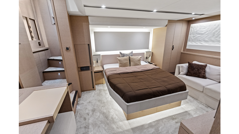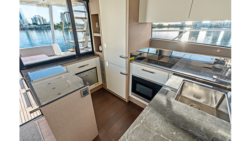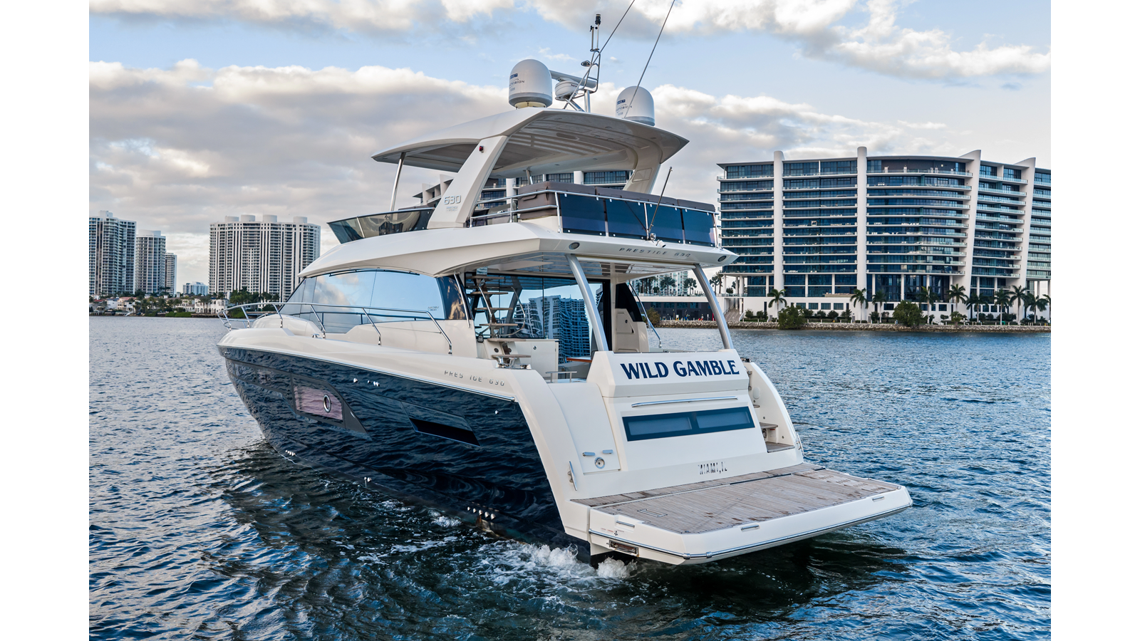 This 2018 Prestige 630 Flybridge is a highly desirable luxury motor yacht offering exceptional volume, a three-stateroom, three-head layout, and a full-beam master stateroom. With her expansive flybridge, aft galley configuration, and owner operator- friendly design, she delivers the space and comfort of a larger yacht in a highly efficient 63-foot platform.