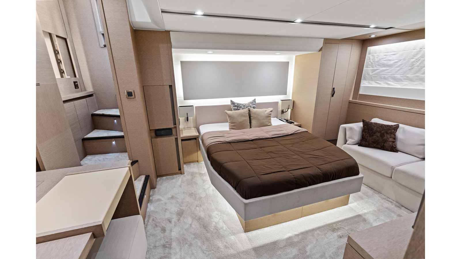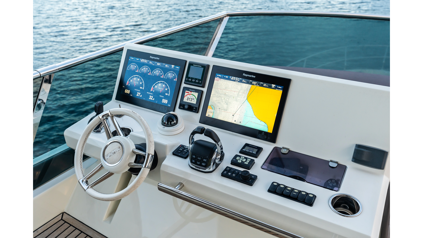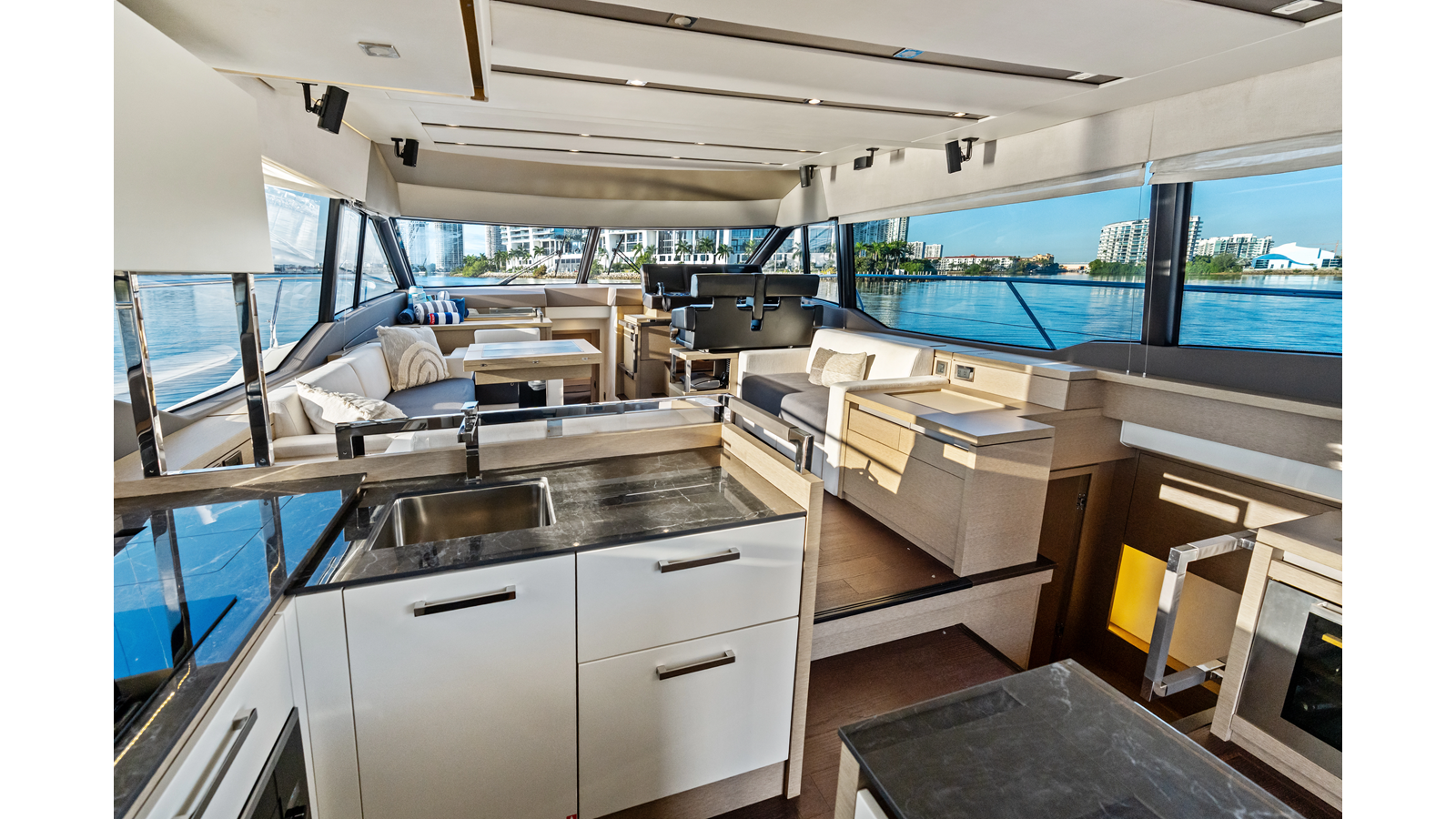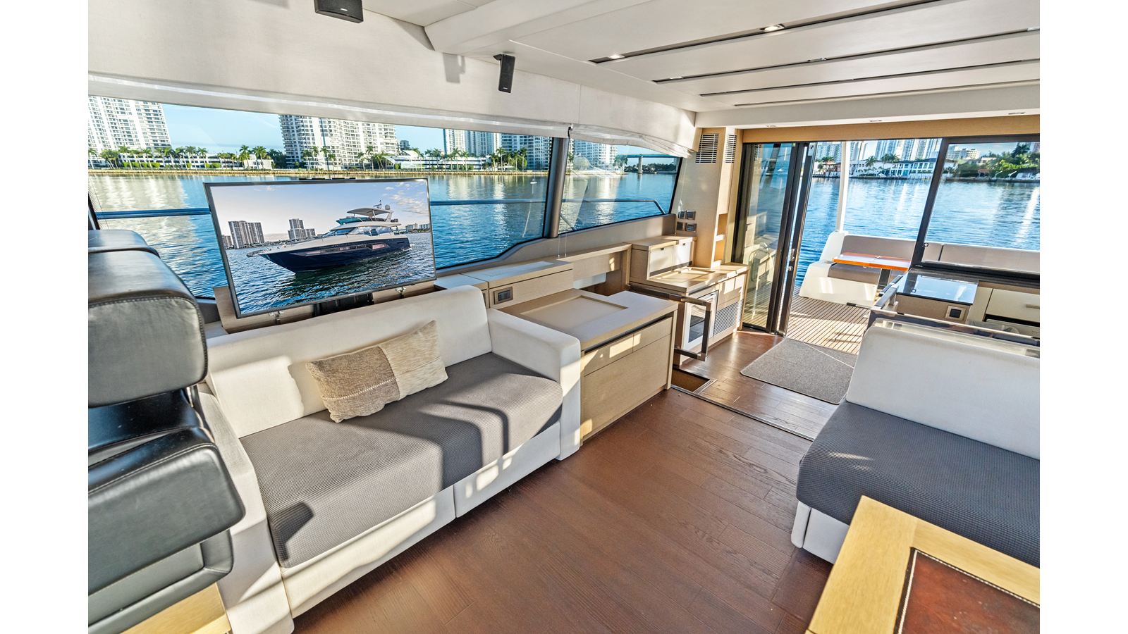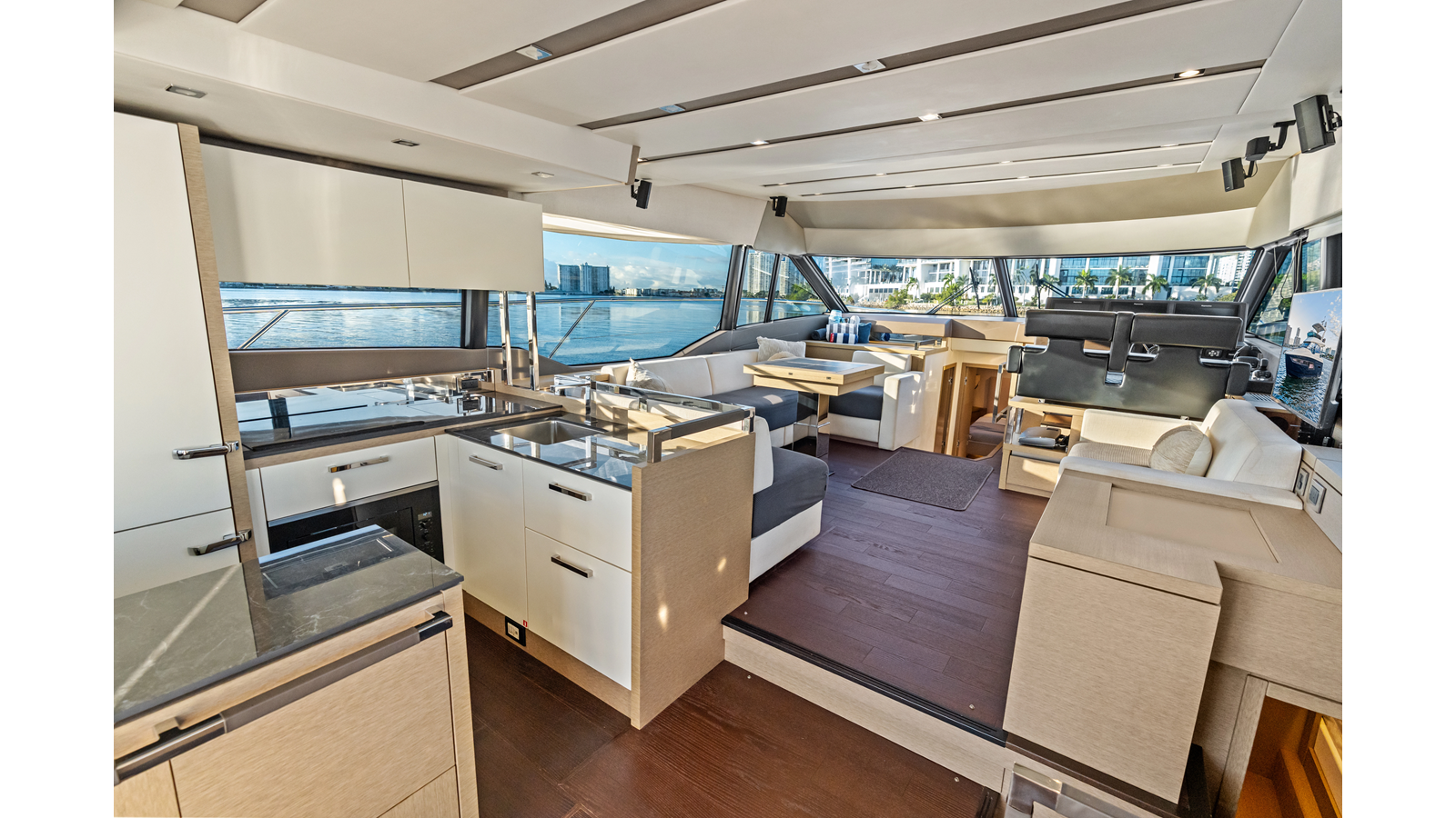 This 2018 Prestige 630 Flybridge is a highly desirable luxury motor yacht offering exceptional volume, a three-stateroom, three-head layout, and a full-beam master stateroom. With her expansive flybridge, aft galley configuration, and owner operator- friendly design, she delivers the space and comfort of a larger yacht in a highly efficient 63-foot platform.