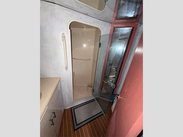 The yacht is currently land-stored and is being offered as a project vessel. It was originally equipped with twin MTU diesel engines; both engines are believed to be seized, and one has been partially disassembled with associated components included. As such, the engines will require either a complete rebuild or full replacement.