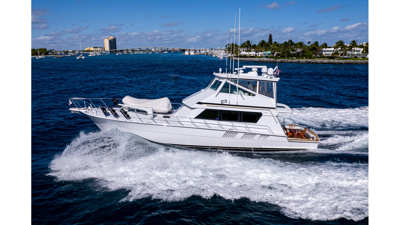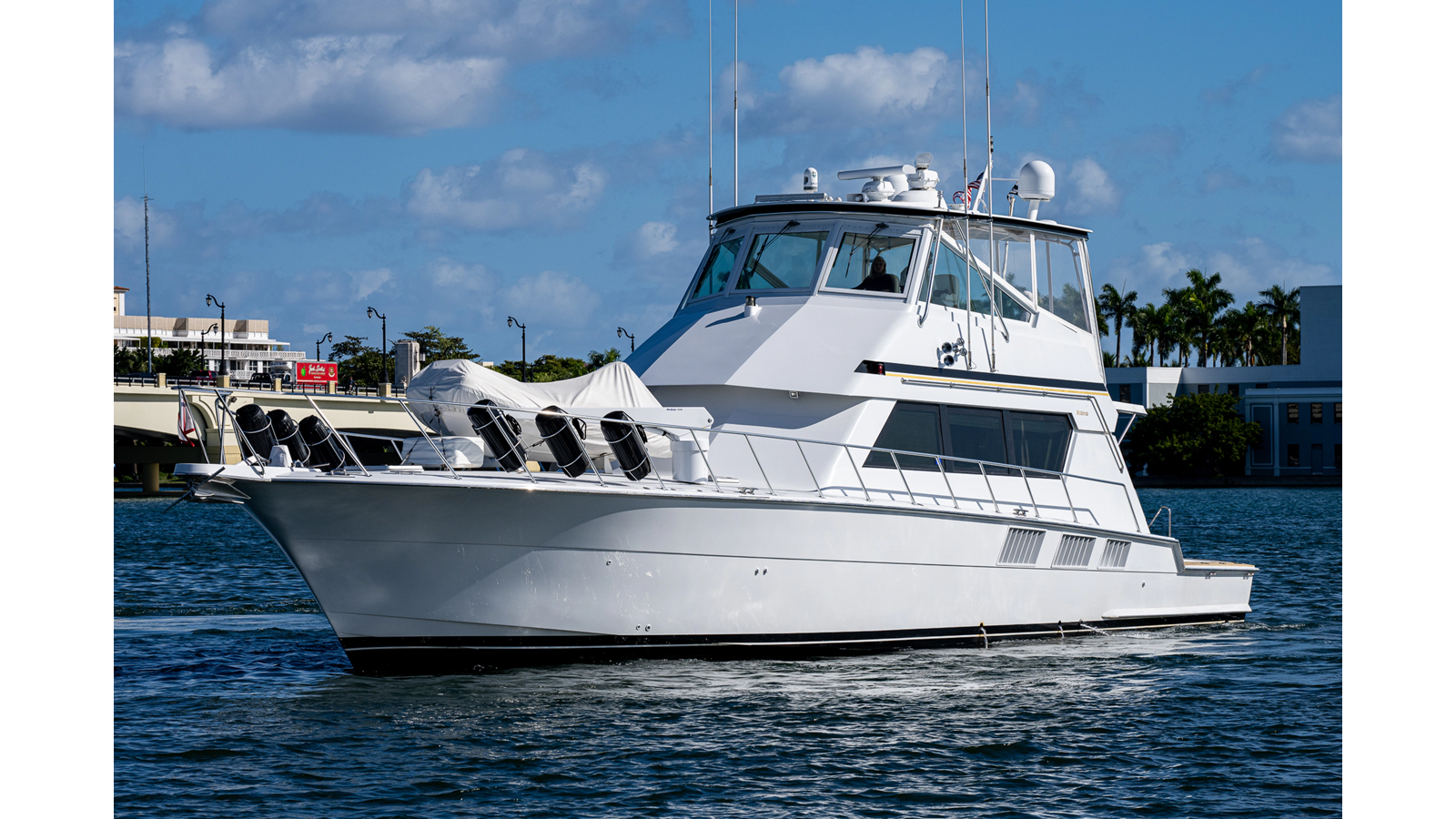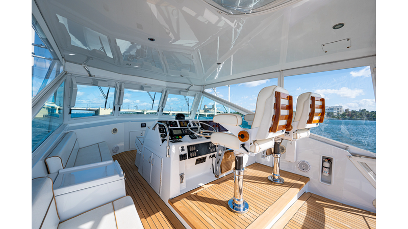 1997 Hatteras 65’ Convertible “Enchantress”: A one-of-a-kind Hatteras convertible that has been treated like a collector’s showpiece. With the same meticulous owner for the last 20 years, there has not been anything on this Hatteras 65’ that has been overlooked or anything that went unconsidered. The interior on “Enchantress” features stunning detail and is very open, blending seamlessly into her well-appointed 4 stateroom, 3 head layout. The flybridge on this Hatteras 65’ offers excellent visibility with plenty of seating and storage to enjoy while cruising offshore. This is your opportunity to own a well-maintained 1997 65’ Hatteras Convertible that was never fished!
