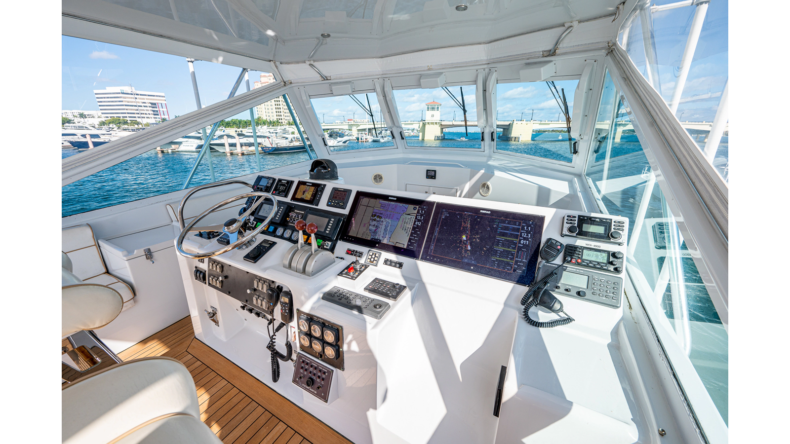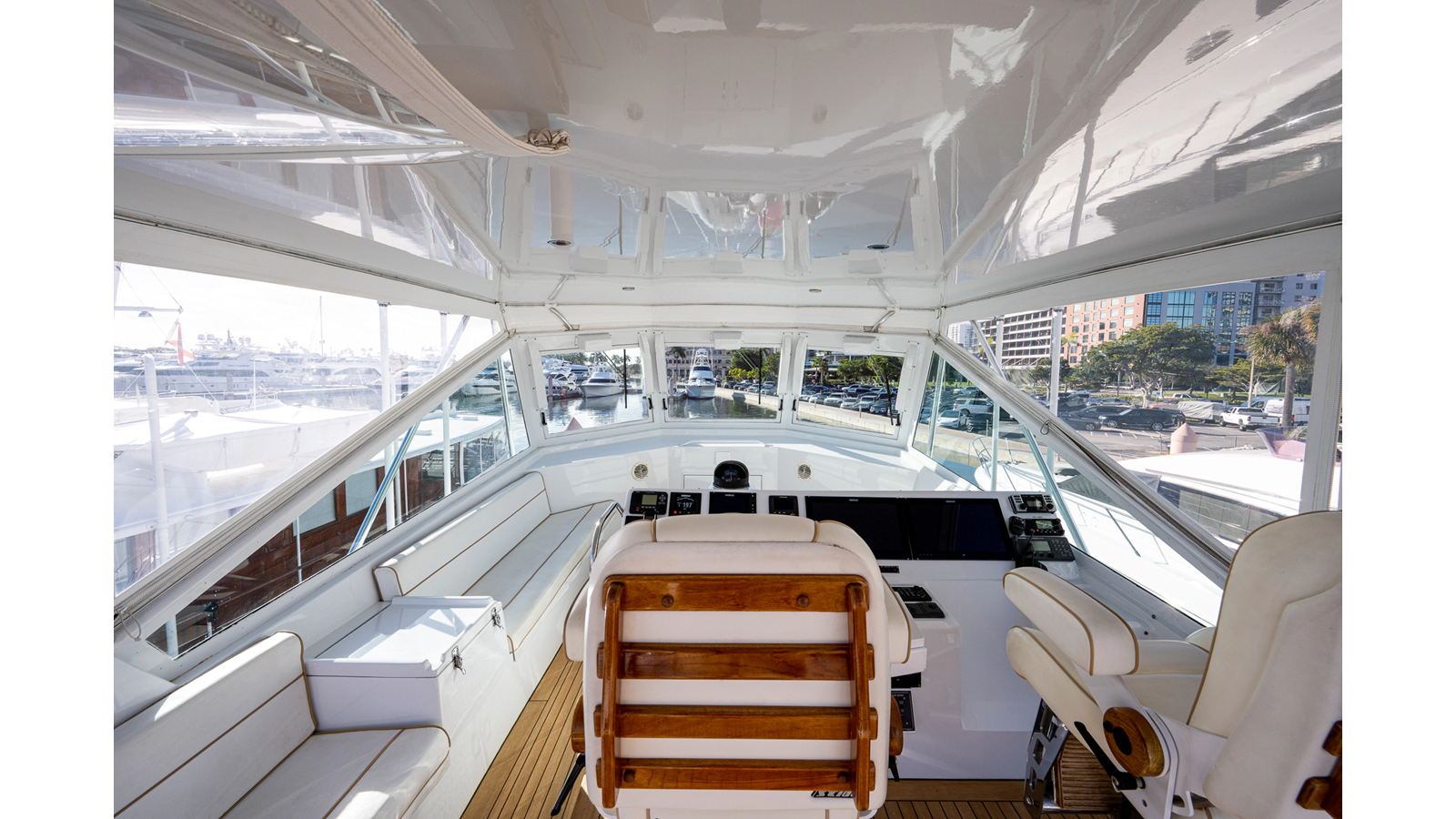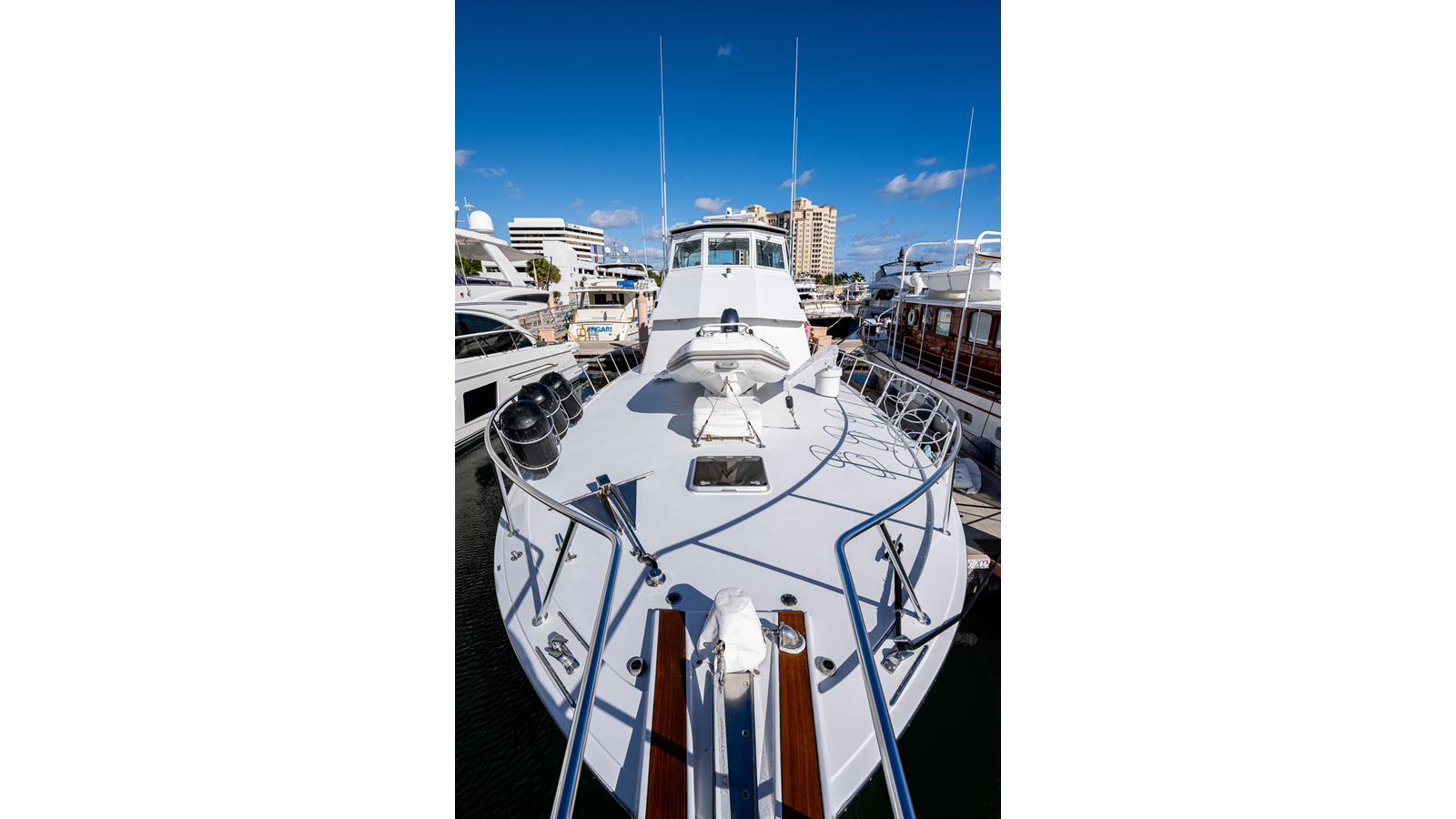 1997 Hatteras 65’ Convertible “Enchantress”: A one-of-a-kind Hatteras convertible that has been treated like a collector’s showpiece. With the same meticulous owner for the last 20 years, there has not been anything on this Hatteras 65’ that has been overlooked or anything that went unconsidered. The interior on “Enchantress” features stunning detail and is very open, blending seamlessly into her well-appointed 4 stateroom, 3 head layout. The flybridge on this Hatteras 65’ offers excellent visibility with plenty of seating and storage to enjoy while cruising offshore. This is your opportunity to own a well-maintained 1997 65’ Hatteras Convertible that was never fished!