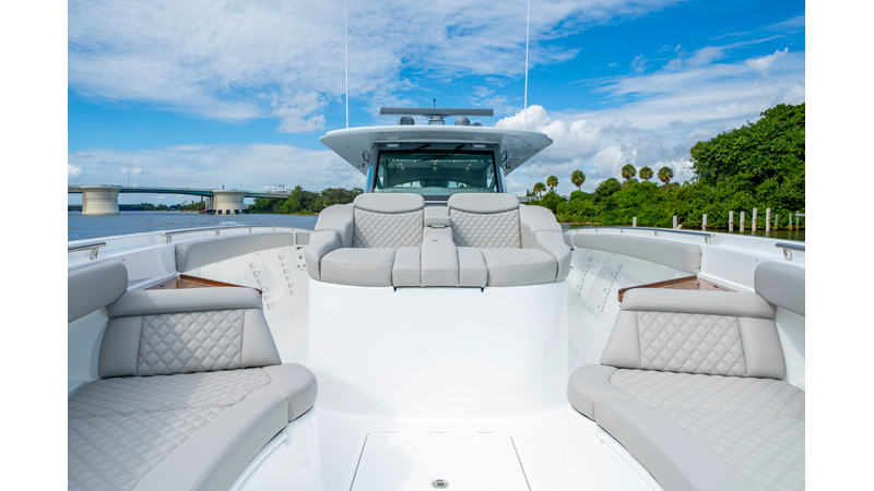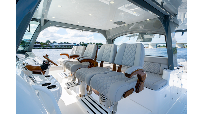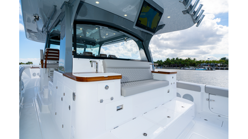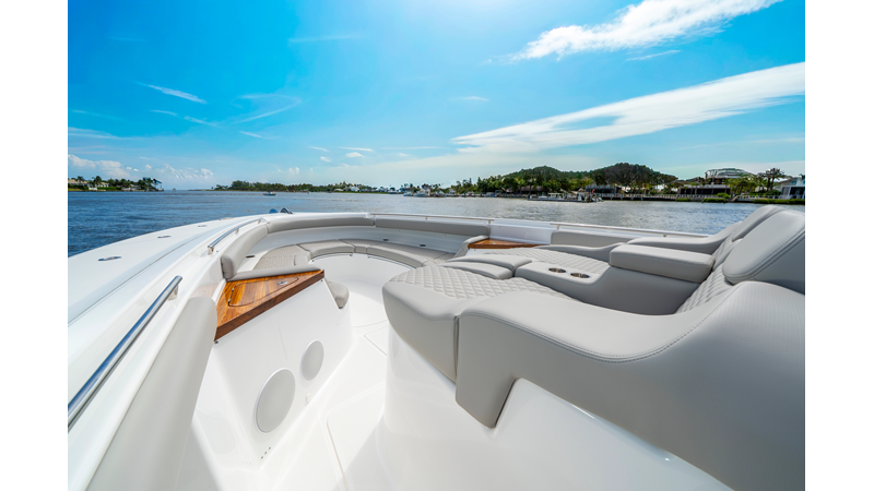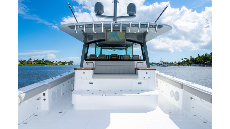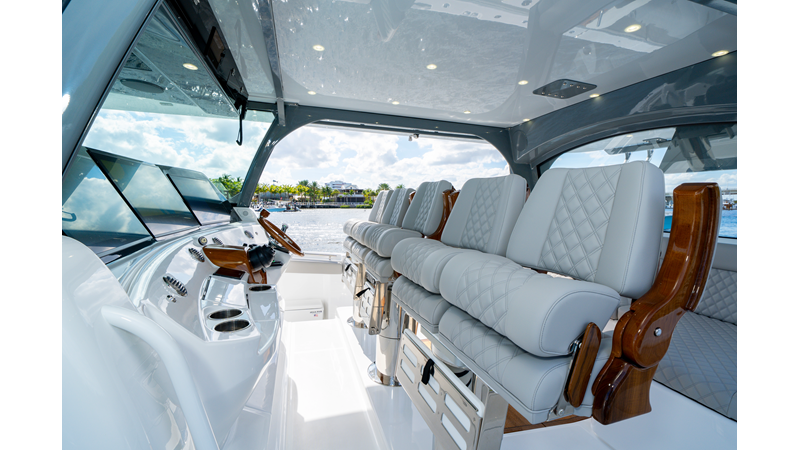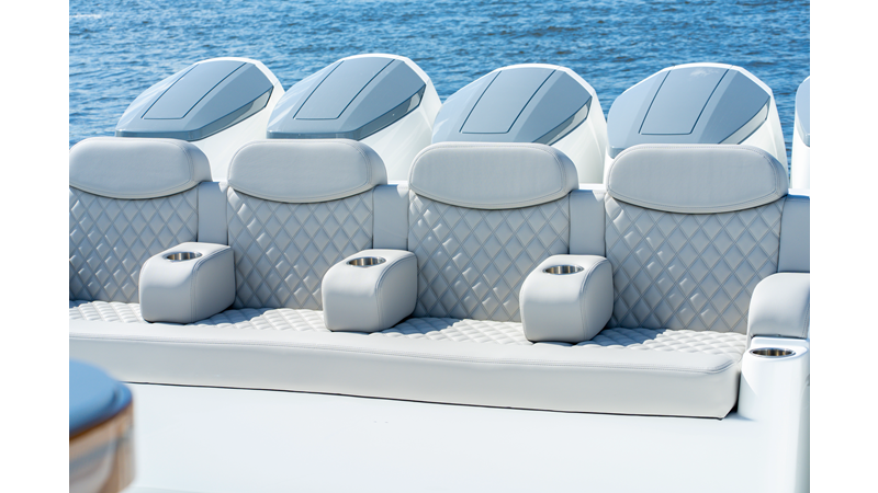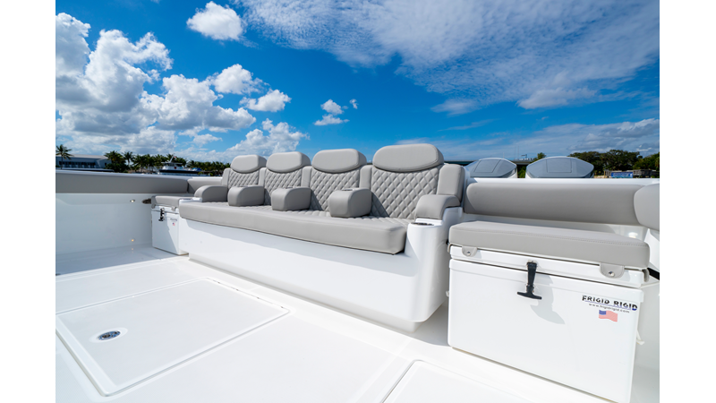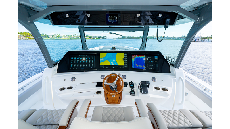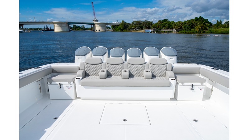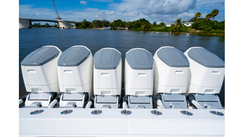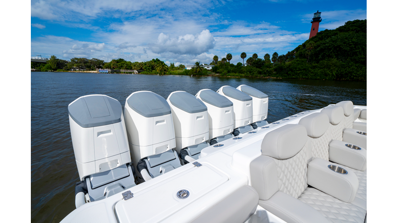 Six (6) Mercury 600 V12 with Joystick electronic steering Seakeeper Model 9 Kahlenberg Dual Air Horn Starlink Wi-Fi with Roku Connection Electronic Steering System with Joystick Garmin 24" Triple Screen Upgrade FLIR M364C Thermal Imaging Camera Garmin AIS Communication System Garmin Radar – 6′, 25kw xHD3 Open Array Garmin XM Weather Garmin 27" Aft Facing Screen Air Conditioning in Cabin and Cockpit Steering Wheel – Upgrade to Stainless Steel Wheel with High Gloss Teak Rim and Power Knob Premium JL Audio Flush Mounted Luxe Speakers Upgraded Underwater lighting Release Marine Quad Helm Seats with Teak Ladder Backs and Arm Rests Custom Bentley or Diamond Pattern Stitching on Seating inserts and Bolsters Cockpit Countertop – Upgrade to High Gloss Teak, with Canvas Covers Summer Kitchen Including One Grill, Two Adjustable Refrigerators/Freezers, Ice Chest and Storage Drawers Transom Seat with Dual 25 Gallon Baitwell and Molded Arm Rests Electric Reel Outlets (6) Outriggers – Gem Lux, 22′ Telescoping Carbon Fiber Poles Refrigerated Chill Plates in Fish Box – Port & Starboard Loaded with additional upgrades