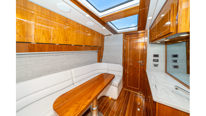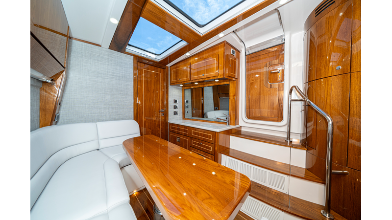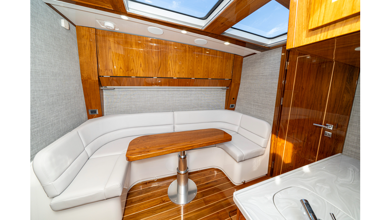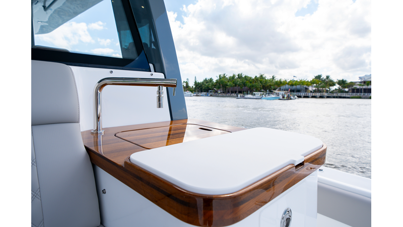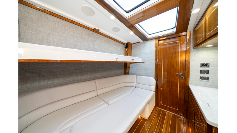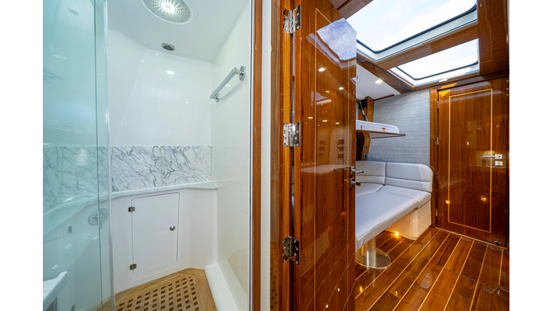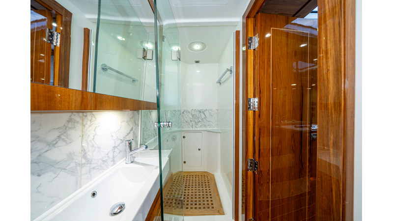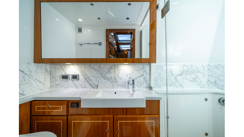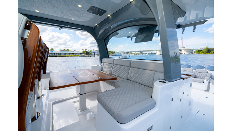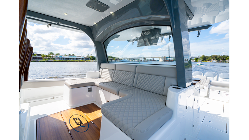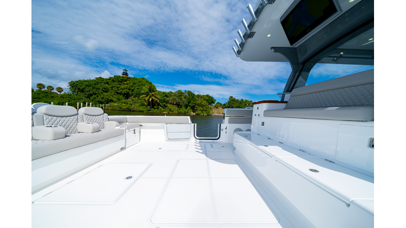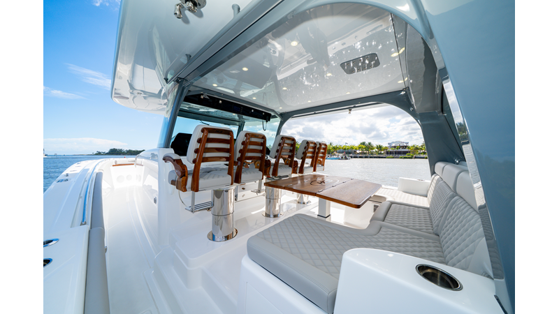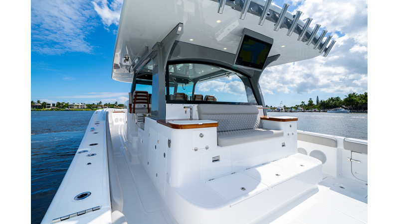 Six (6) Mercury 600 V12 with Joystick electronic steering Seakeeper Model 9 Kahlenberg Dual Air Horn Starlink Wi-Fi with Roku Connection Electronic Steering System with Joystick Garmin 24" Triple Screen Upgrade FLIR M364C Thermal Imaging Camera Garmin AIS Communication System Garmin Radar – 6′, 25kw xHD3 Open Array Garmin XM Weather Garmin 27" Aft Facing Screen Air Conditioning in Cabin and Cockpit Steering Wheel – Upgrade to Stainless Steel Wheel with High Gloss Teak Rim and Power Knob Premium JL Audio Flush Mounted Luxe Speakers Upgraded Underwater lighting Release Marine Quad Helm Seats with Teak Ladder Backs and Arm Rests Custom Bentley or Diamond Pattern Stitching on Seating inserts and Bolsters Cockpit Countertop – Upgrade to High Gloss Teak, with Canvas Covers Summer Kitchen Including One Grill, Two Adjustable Refrigerators/Freezers, Ice Chest and Storage Drawers Transom Seat with Dual 25 Gallon Baitwell and Molded Arm Rests Electric Reel Outlets (6) Outriggers – Gem Lux, 22′ Telescoping Carbon Fiber Poles Refrigerated Chill Plates in Fish Box – Port & Starboard Loaded with additional upgrades
