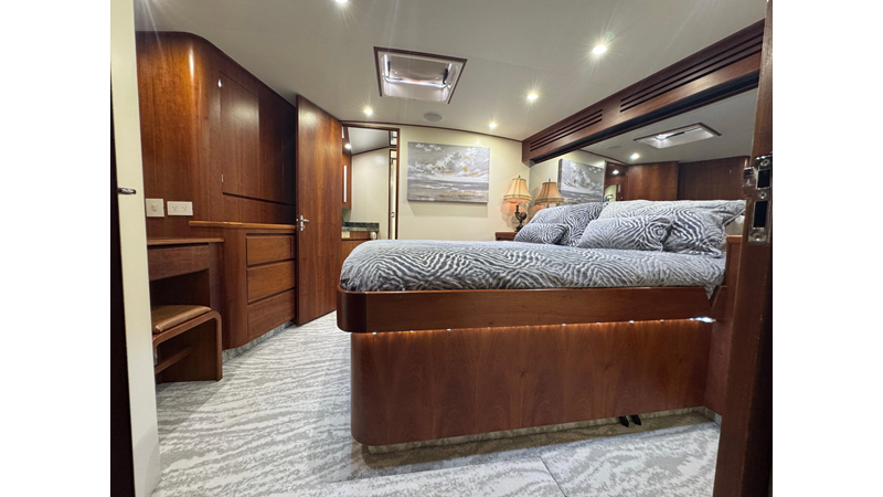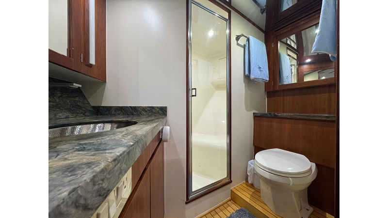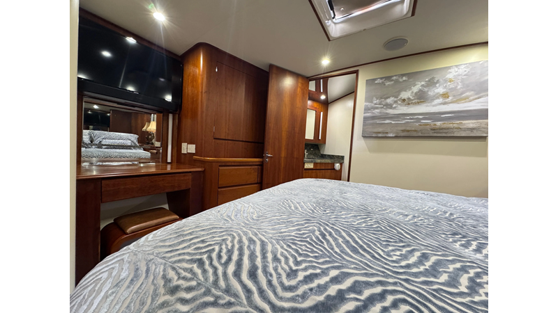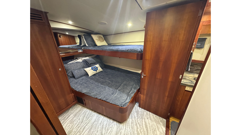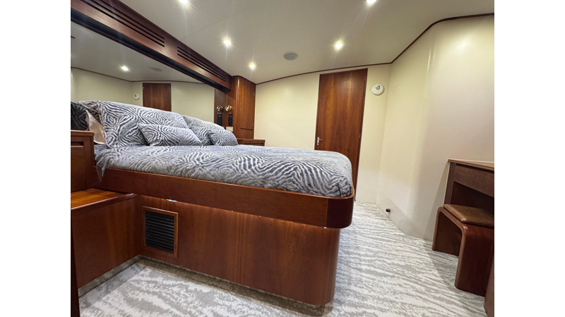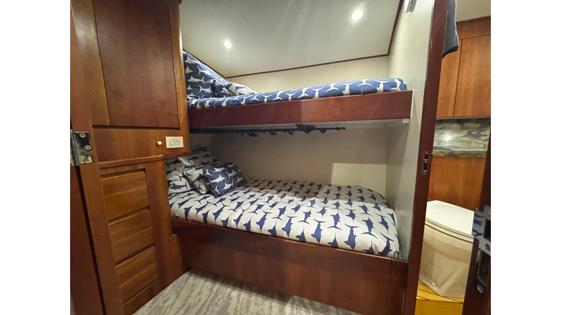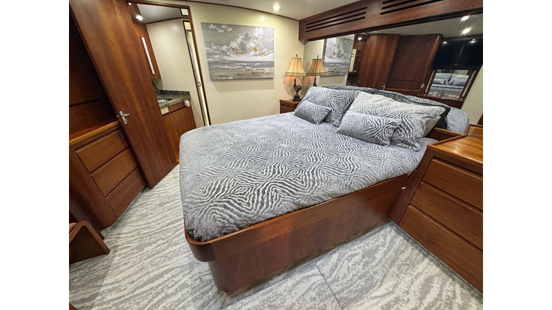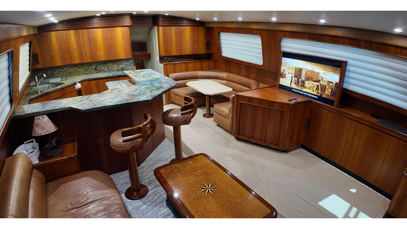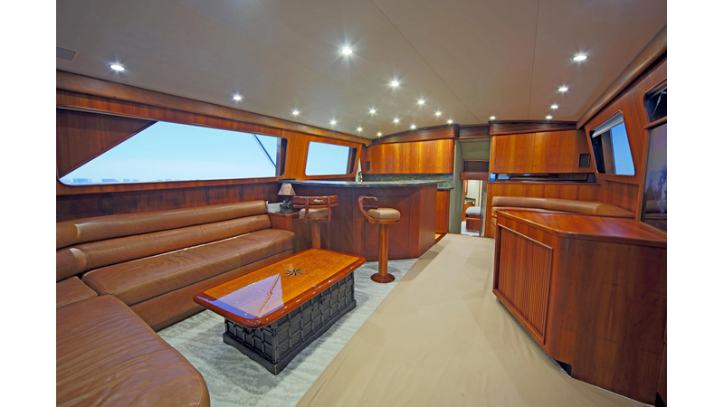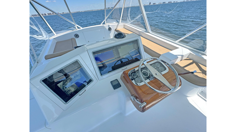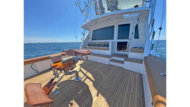 Step aboard “Pier Pressure” to find a continuously updated Jim Smith 65 Open, a masterpiece of luxury and the pinnacle of performance. Maintained with an Open Checkbook, she received a $2,000,000 refit in 2015-2016, which included Full top-end rebuilds on both MTUs, new transmissions, Garmin Electronics, Palm Beach Tuna Tower, and Mezzanine with AC. “Pier Pressure” is impressive at every level, including performance. She boasts a 35 knot cruise, burning 120 gallons/hour with a top end speed of 44 knots, compliments of the Donald Blunt designed bottom. On long offshore trips and tournaments, comfort is key, and the desirable 3 State Room / 3 Head layout provides ample space for guests & crew to enjoy overnight trips or extended stays onboard.
