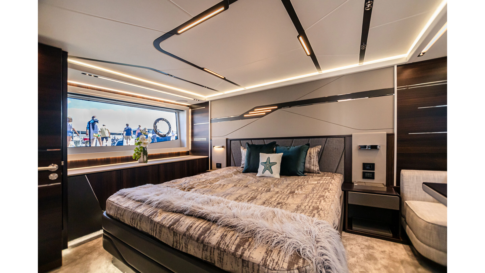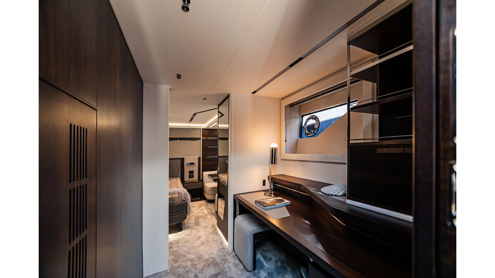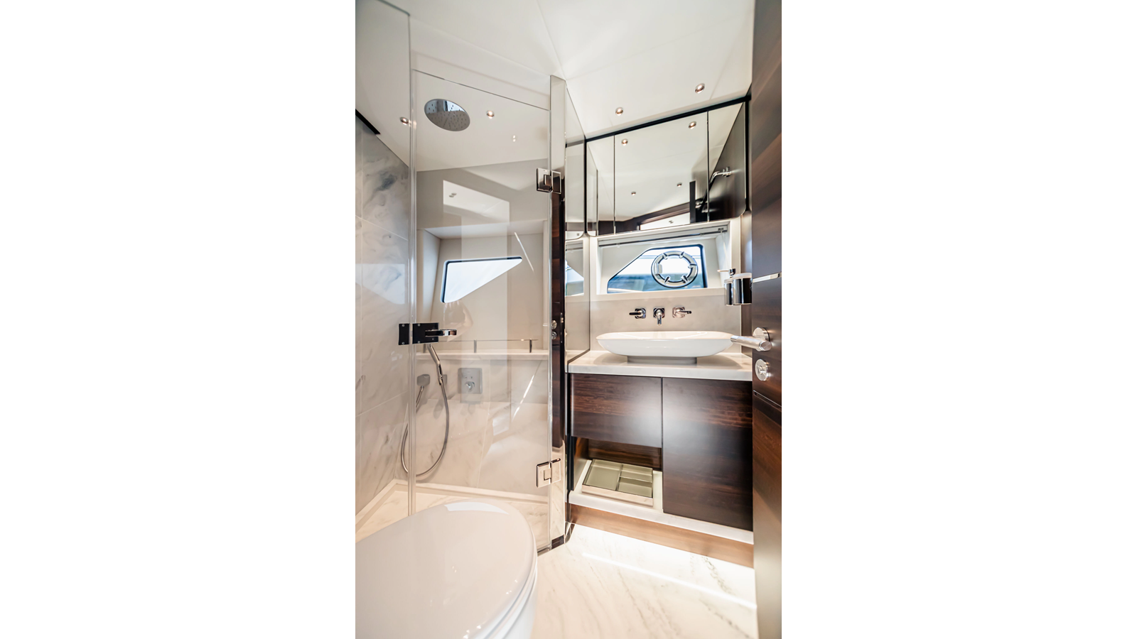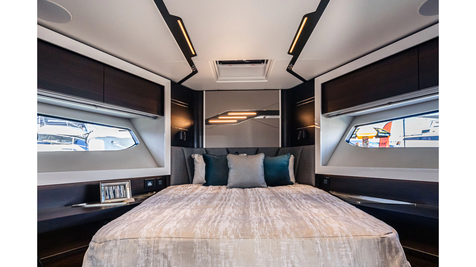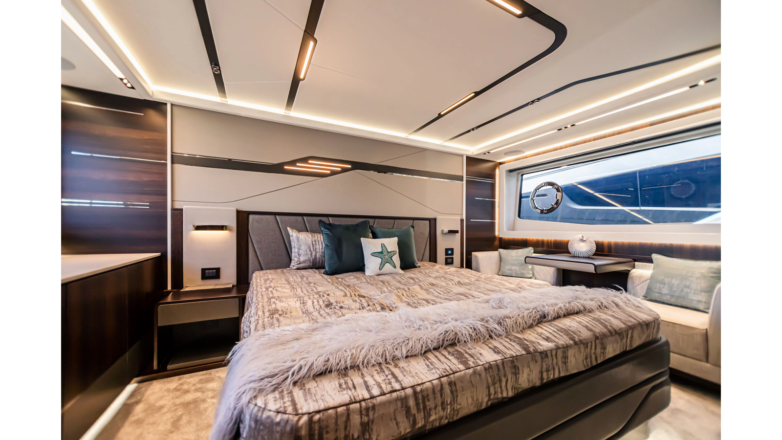 The Predator 65 combines striking exterior lines with impressive onboard volume. Designed for fast cruising and social entertaining, she features expansive exterior lounging areas and a refined interior with abundant natural light. Her layout balances performance with comfort, offering well-appointed guest accommodations and a commanding helm position for engaging, driver-focused yachting.
