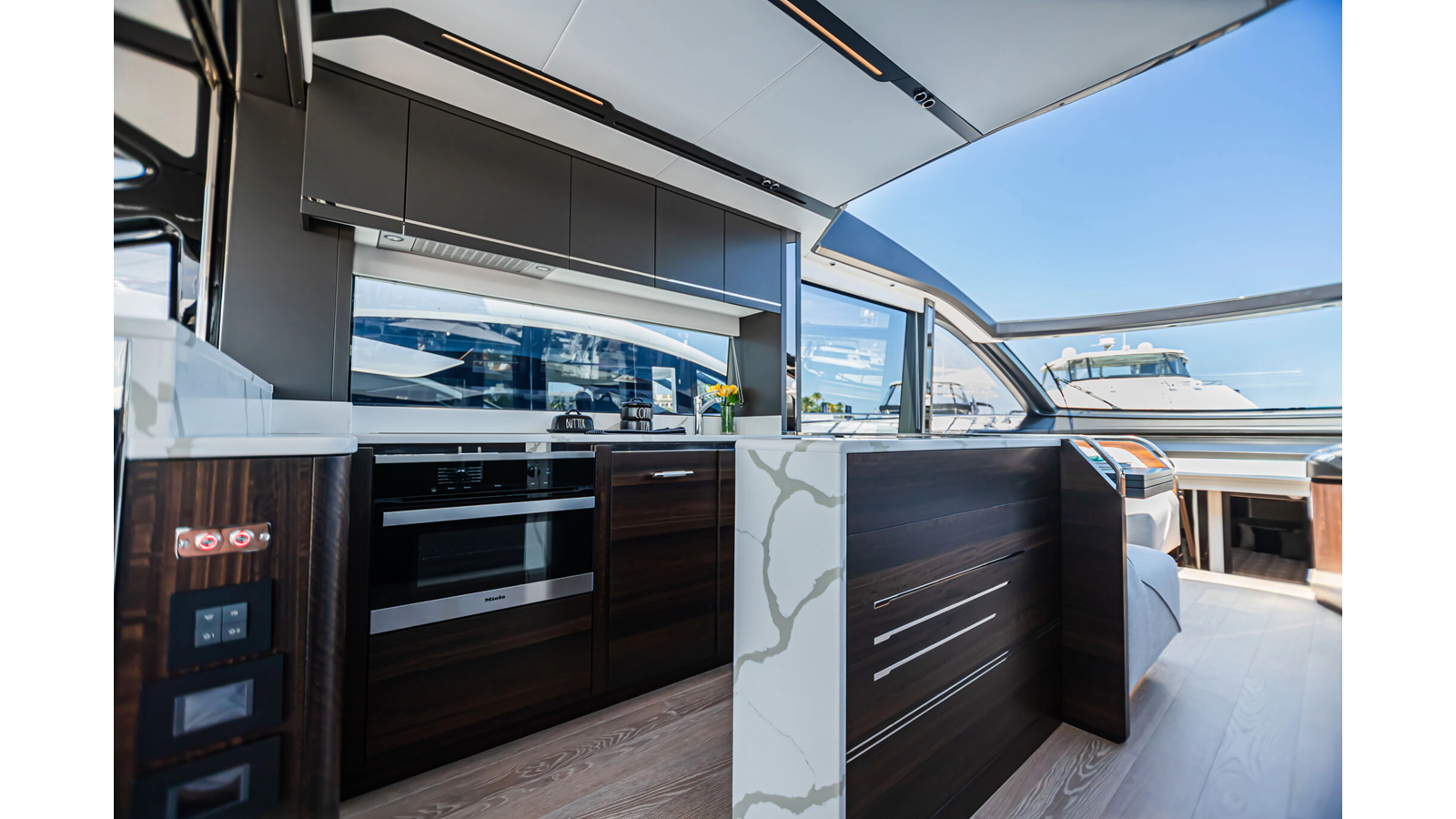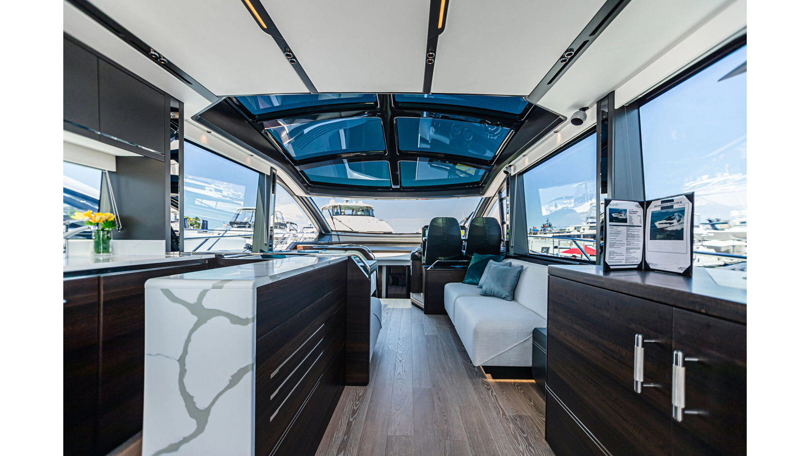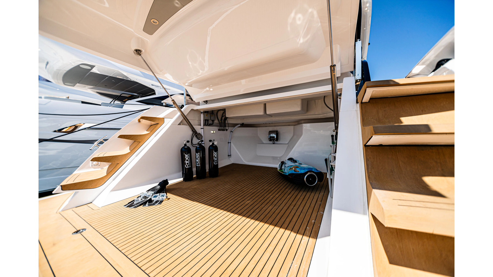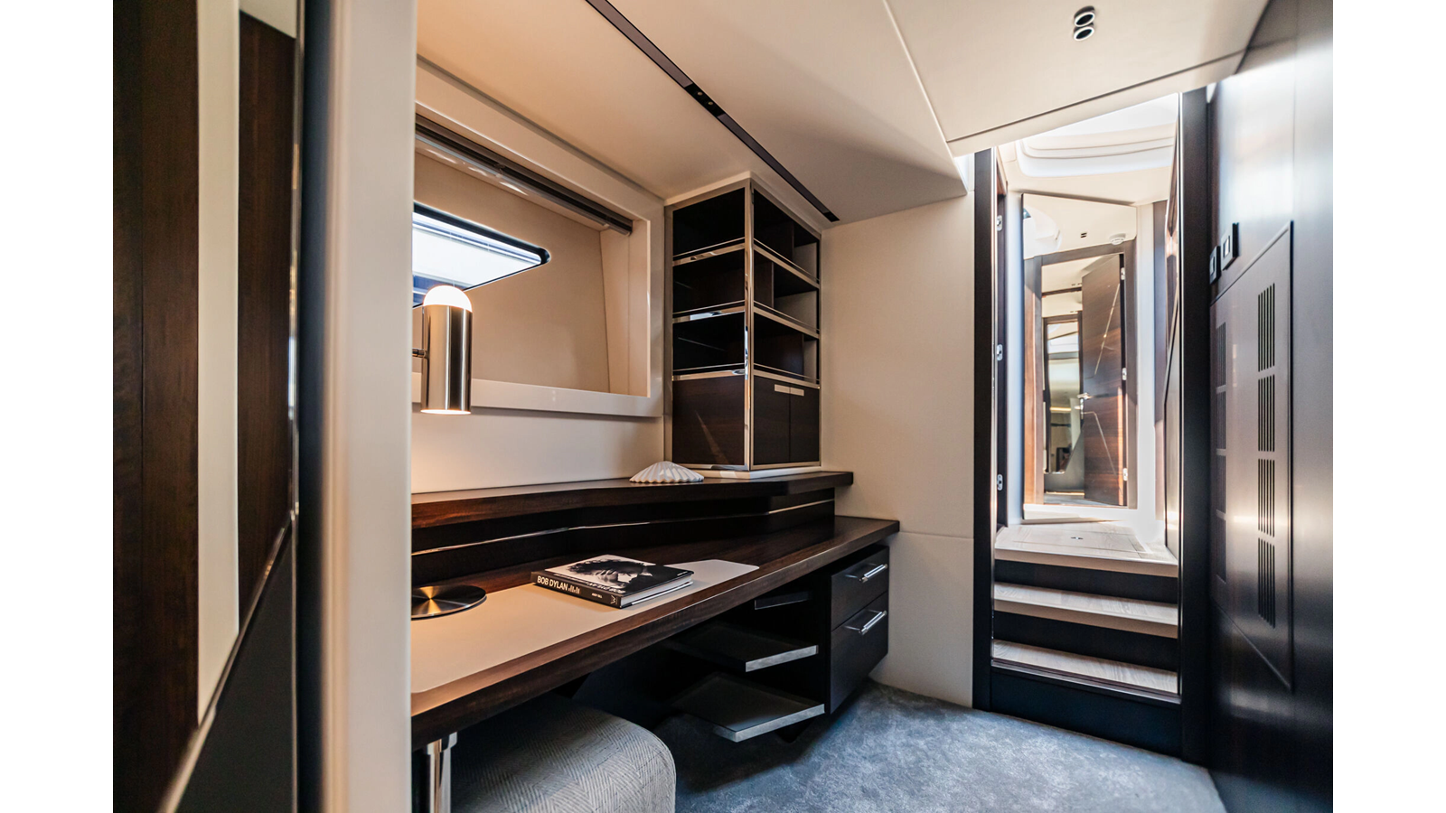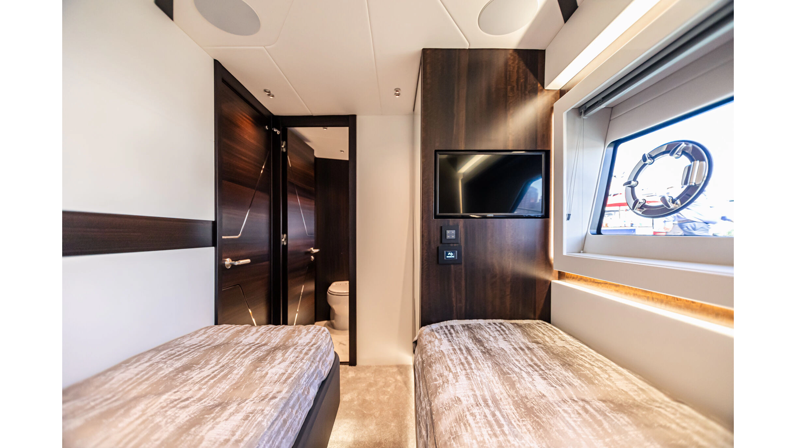 The Predator 65 combines striking exterior lines with impressive onboard volume. Designed for fast cruising and social entertaining, she features expansive exterior lounging areas and a refined interior with abundant natural light. Her layout balances performance with comfort, offering well-appointed guest accommodations and a commanding helm position for engaging, driver-focused yachting.