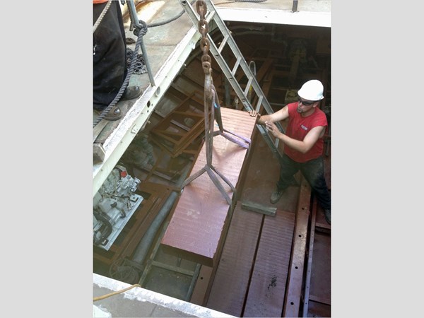 The ST’s had no inside passage to the wheelhouse, but we now have inside stairs with the new wider wheelhouse.